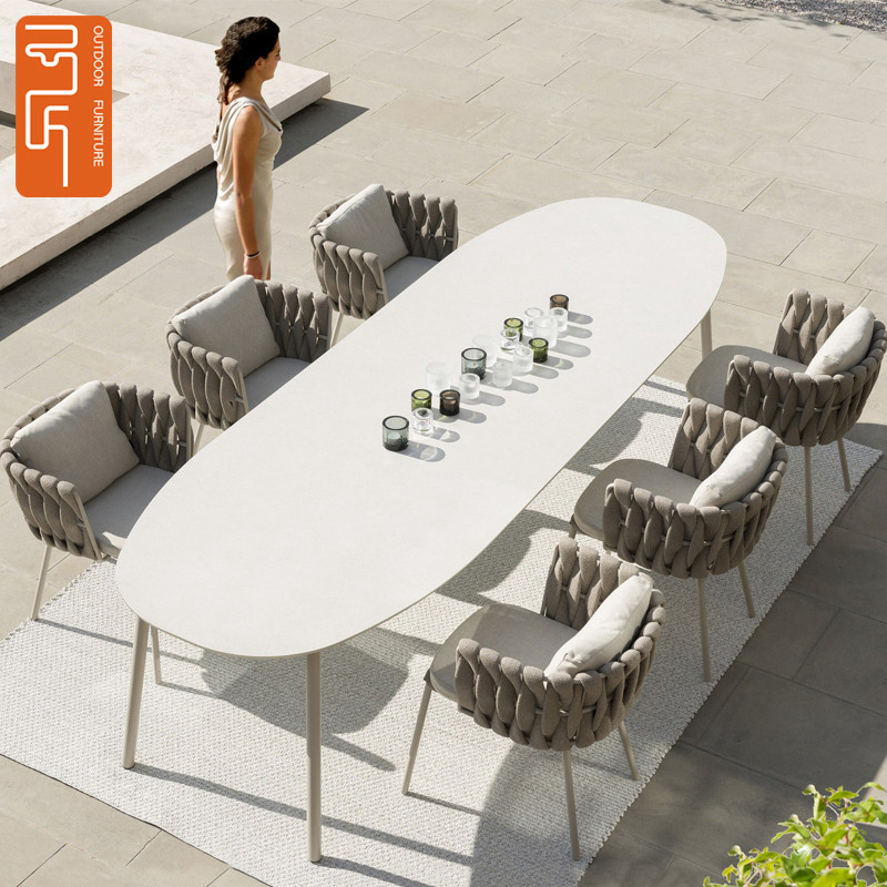 Outdoor tables and chairs courtyard terrace waterproof sunscreen rattan chair leisure long table rattan chair combination villa open-air outdoor chair