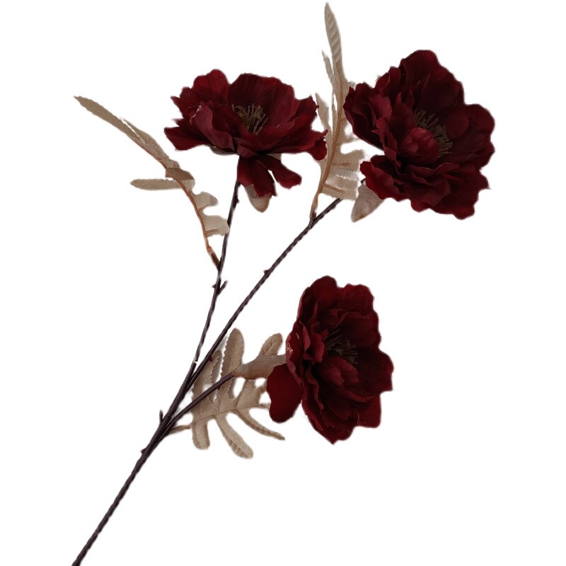 Manufacturer wholesale 3-head hibiscus peony emulation flower heartasteen and merrino flower wedding celebration flower art floral material to flower flower arrangement