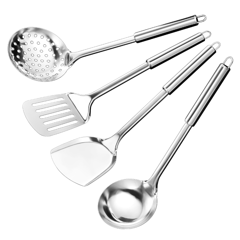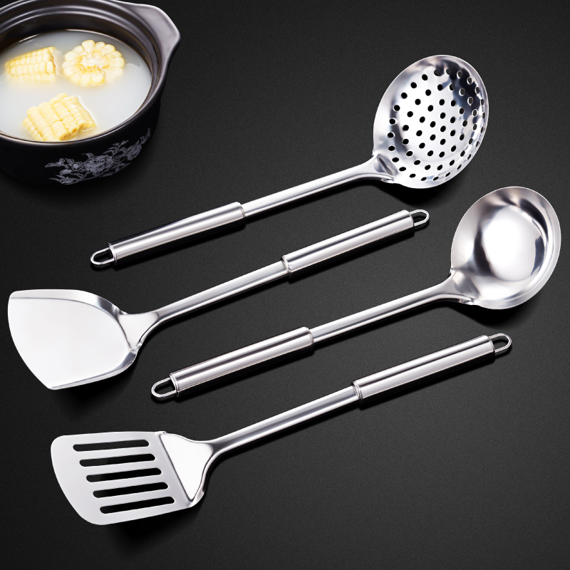 Cooking flat stainless steel spatula pot spoon set kitchen high temperature resistant household long handle kitchen utensils non-stick pot special