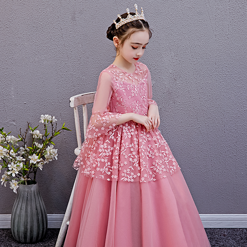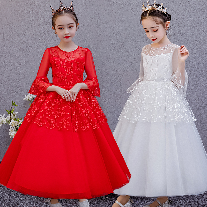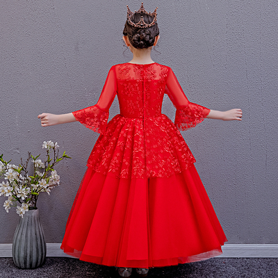 Summer Girls Western Style Princess Dress Small Host Evening Dress Children's Performance Piano Costume Flower Girl Wedding Dress