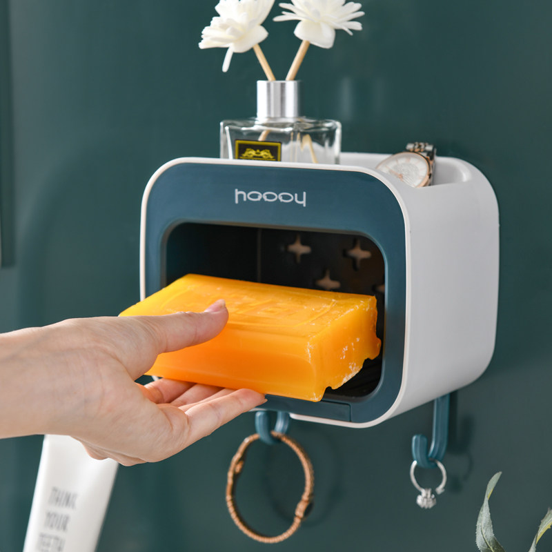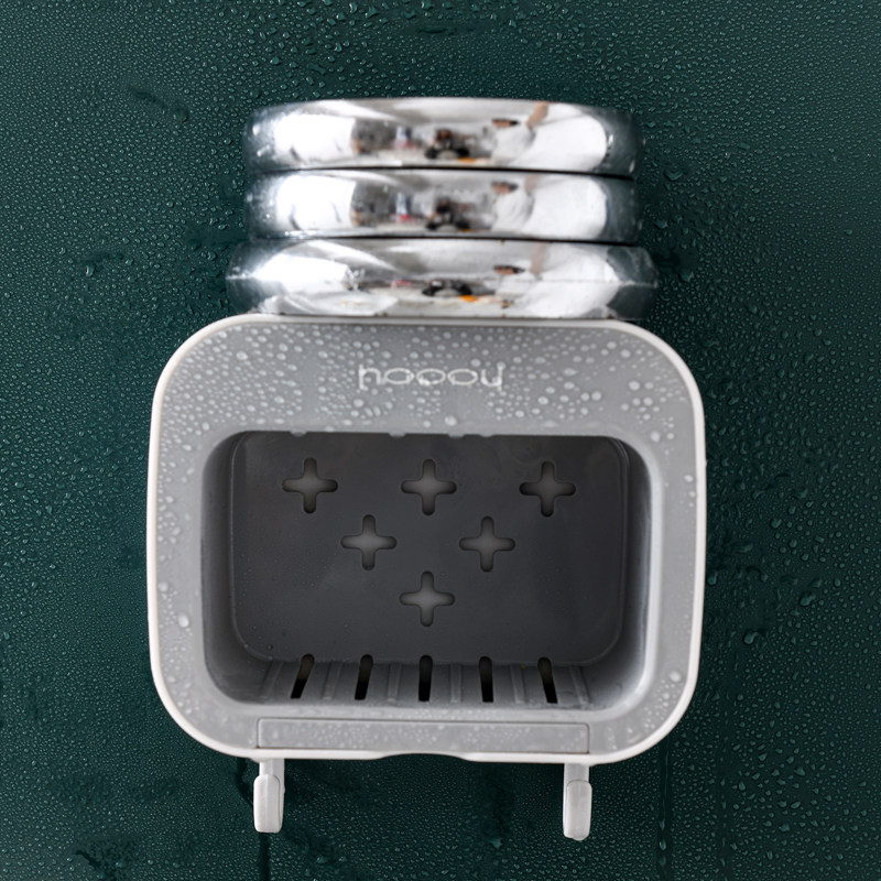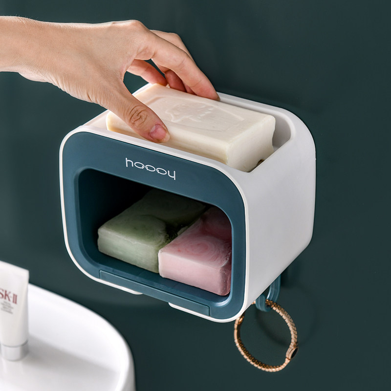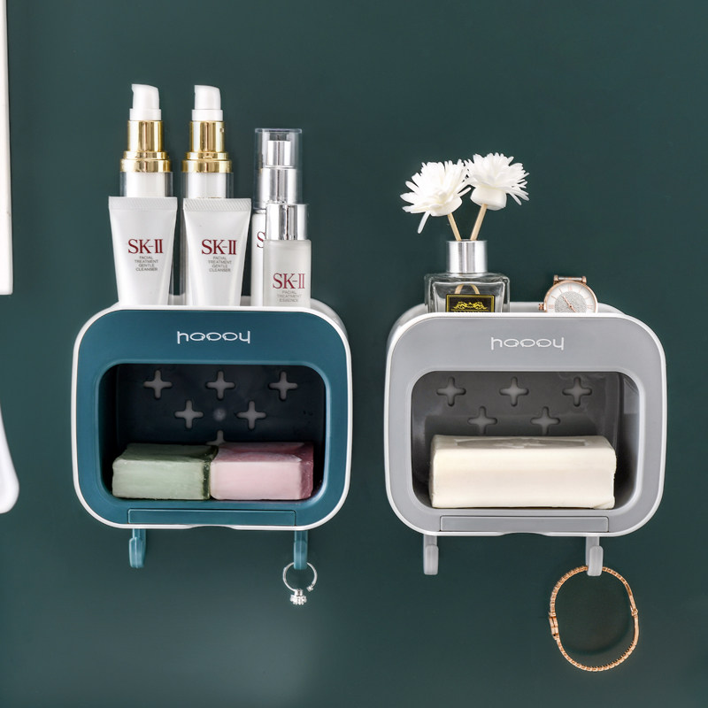 Wall-free wall hanging toilet soap box suction wall hanging asphalt shelf frame creative double layer with covered soap frame box