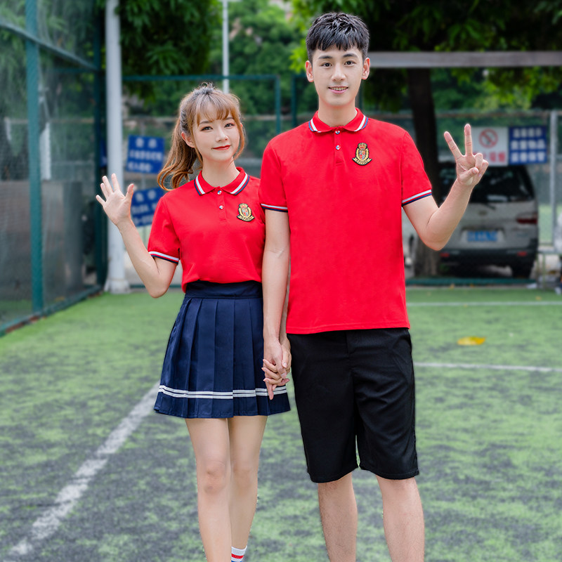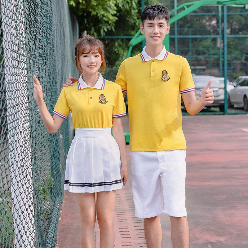Male white collar red T-shirt white shorts woman white collar red T-shirt white collar red T-shirt black shorts woman white collar red T-shirt hidden green dress male yellow T-shirt white shorts female yellow T-shirt white