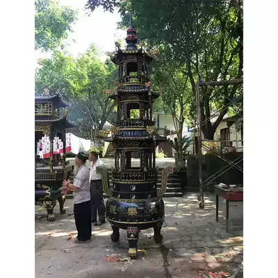 Fomen large outdoor high-quality incense burner second floor lettering Baoding Temple instruments cast iron multi-layer large round tripod customization