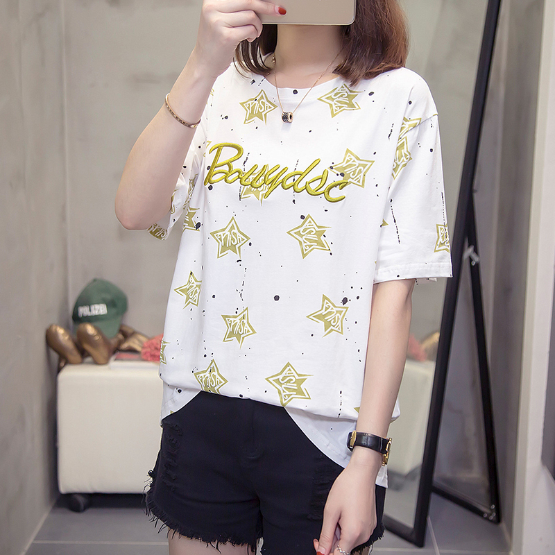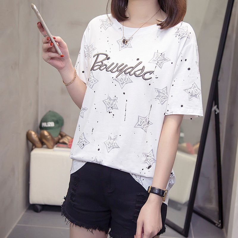 Hong Kong pure cotton short sleeve T-shirt woman 2021 new big size fashion letter embroidered jacket with undershirt tide