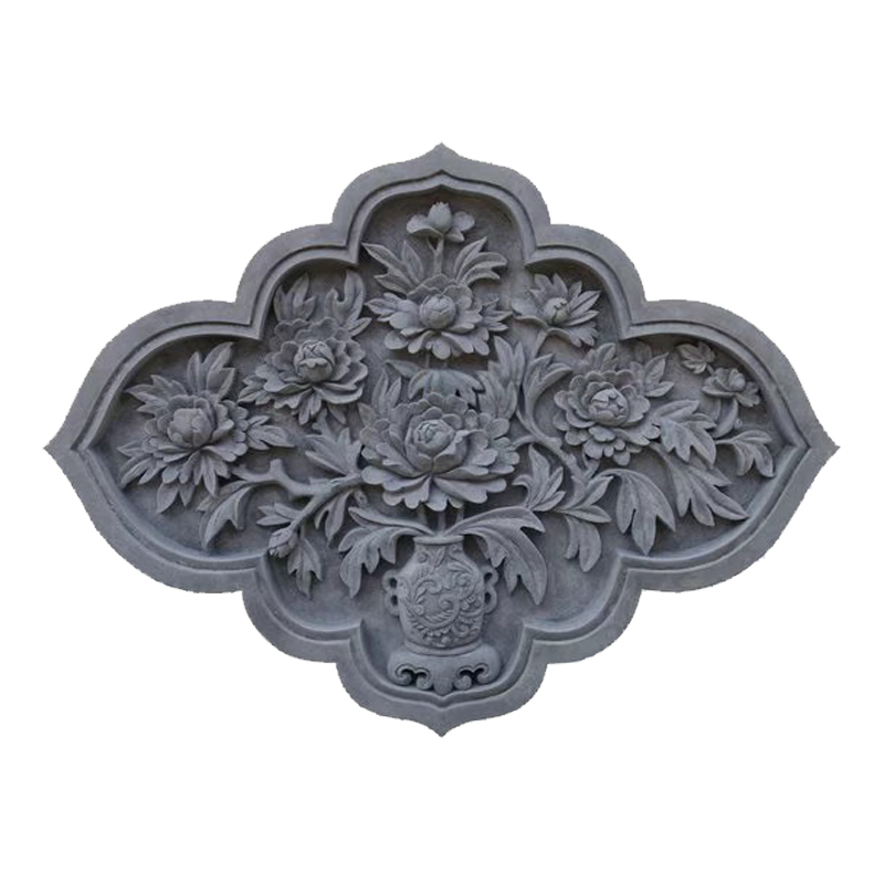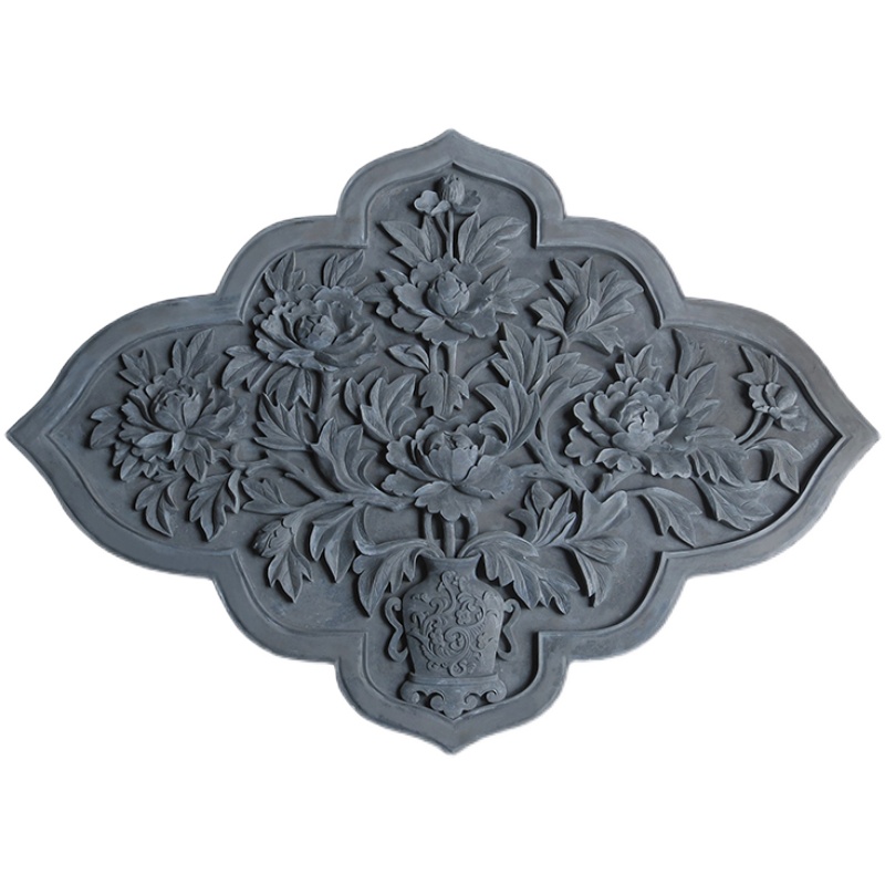 Antique brick carving Chinese courtyard fence decoration hanging ornaments peony picture welcome wall wall painting ancient building rhombus relief painting