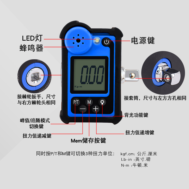 Electronic digital display torque meter 3 8 1 2 torque wrench torque meter kg force with backlight sound and light alarm prompt