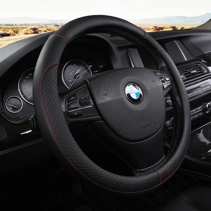 Leather (solid black red line) steering wheel cover