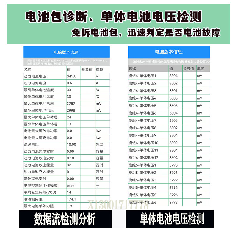 New energy car fault diagnosis instrument mobile phone obd decoder electric car battery pack monomer voltage detector