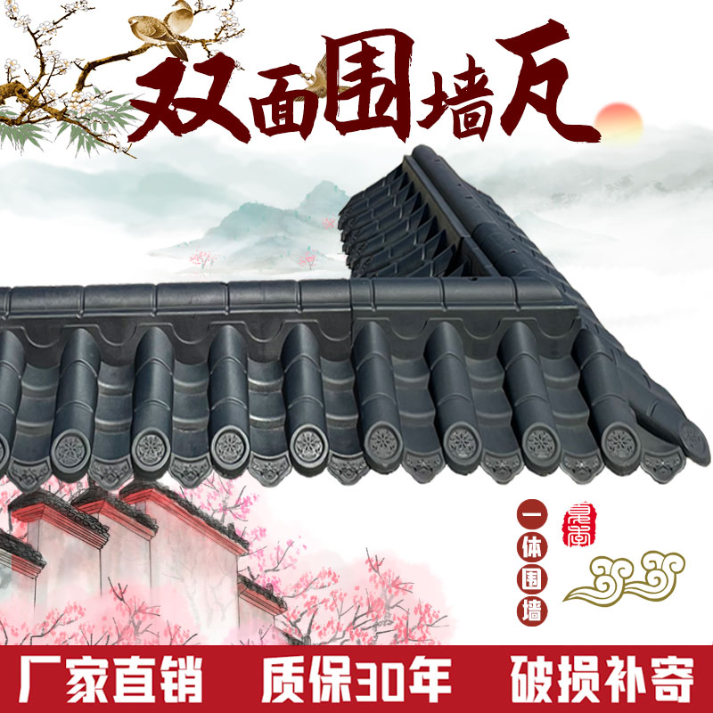 Wall antique resin tile horse head wall double-sided integrated wall head tile decoration eaves door head tile ancient chinese green tile