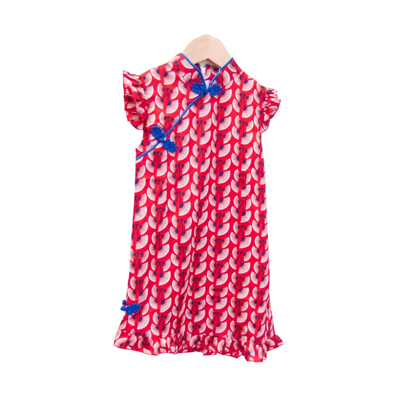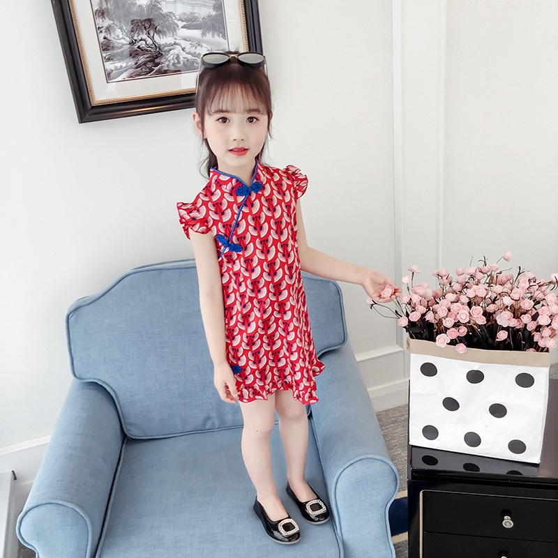 Children's dress and dress Han Edition Baiyu girl in the national wind of the big child retro dress children sleeveless flag robe