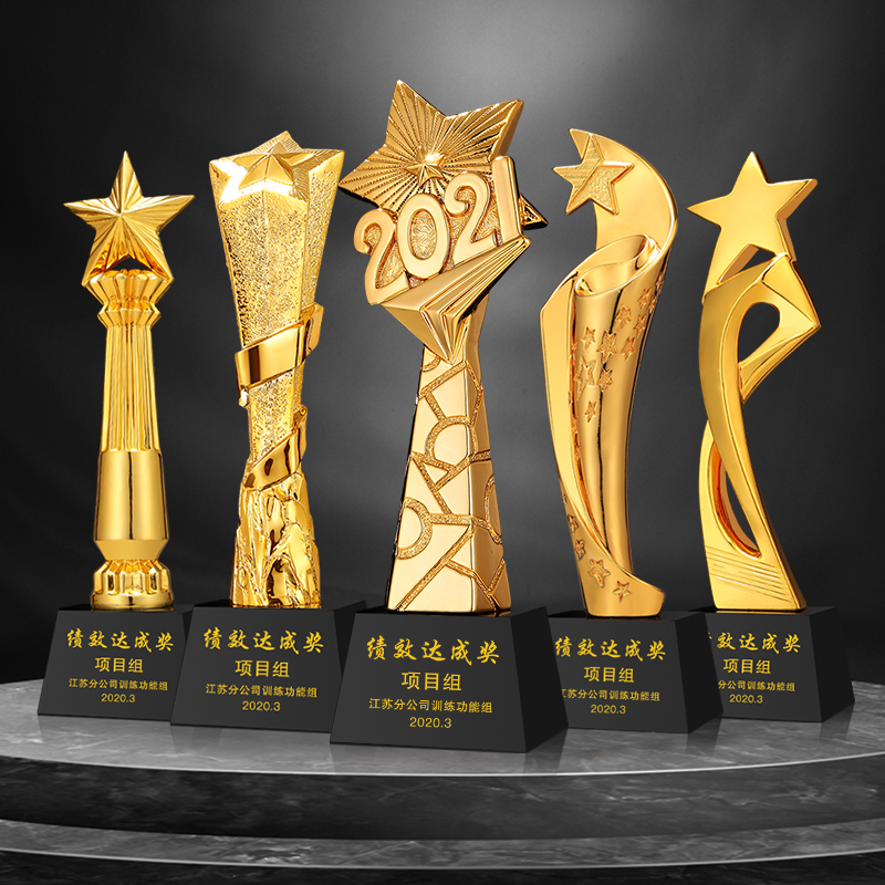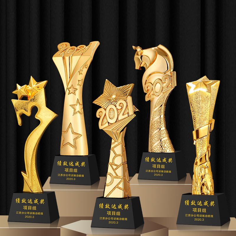 Customized gold, silver and copper crystal resin trophy custom company corporate event competition award honor trophy medal