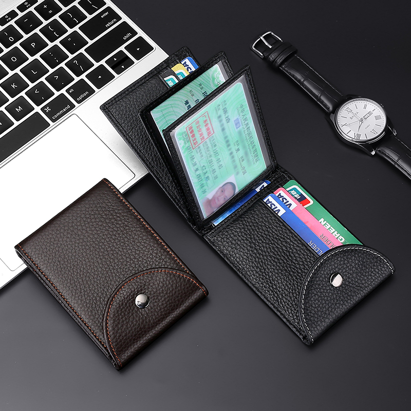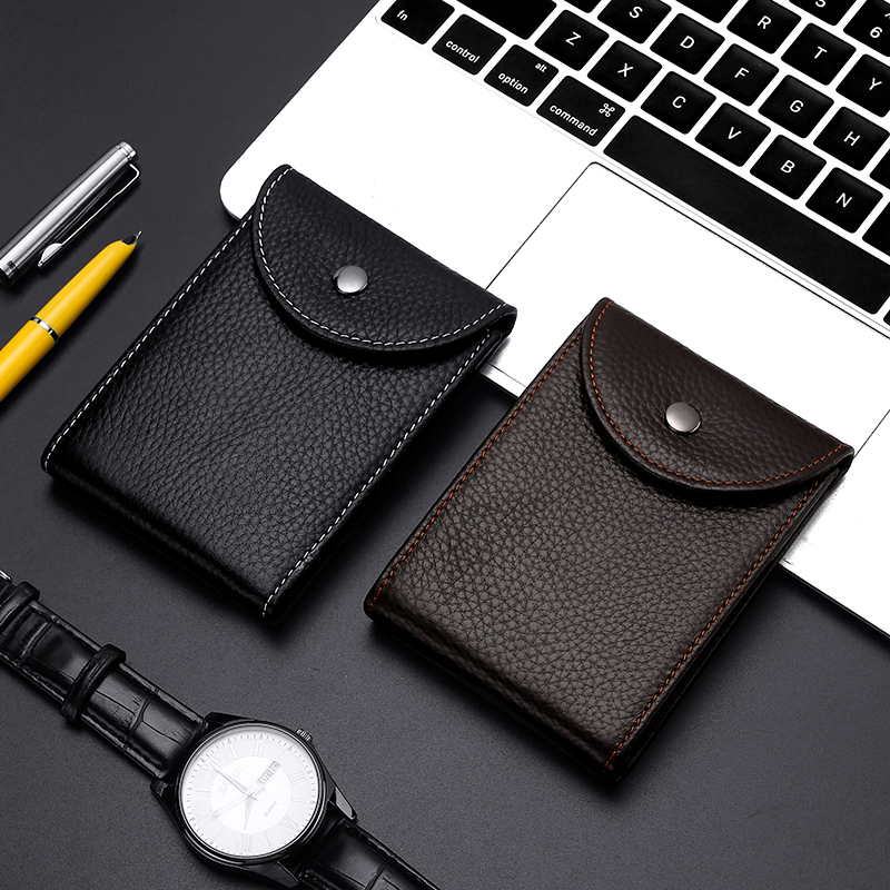 Business Genuine Leather Male Documents Card Bag Theft Protection Brush Anti-Magnetic Small Card Clip Large Capacity Card Bag Multi-Position Card Sleeve
