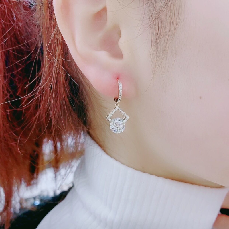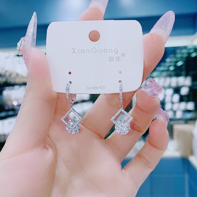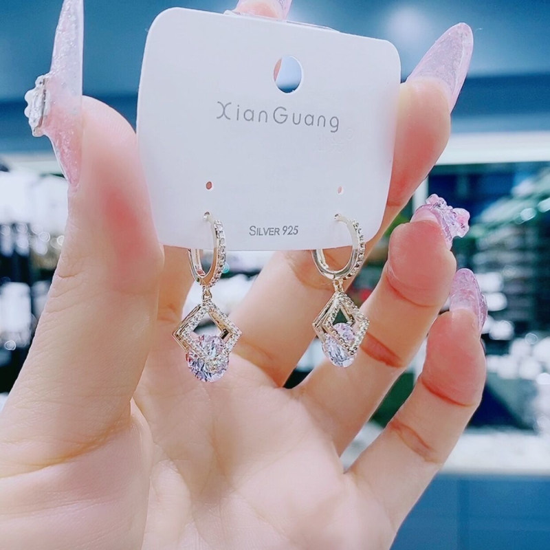 High Group Sense Geometric Rhomboid Earrings 2021 New Small Delicate Zircons Crystal Earrings Pendant 100 Hitch Pendant