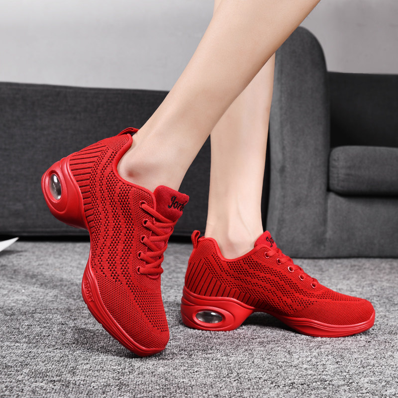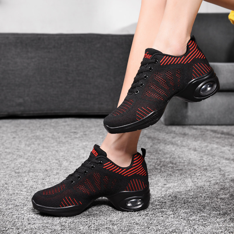 Square dance shoes adult dance shoes women's soft bottom spring breathable mesh sports dance shoes outer wear fashion black