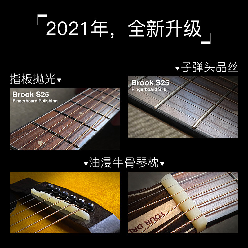 Brook S25-sided veneer folk guitar entry veneer beginner men and women 40-inch electric box guitar 41-inch
