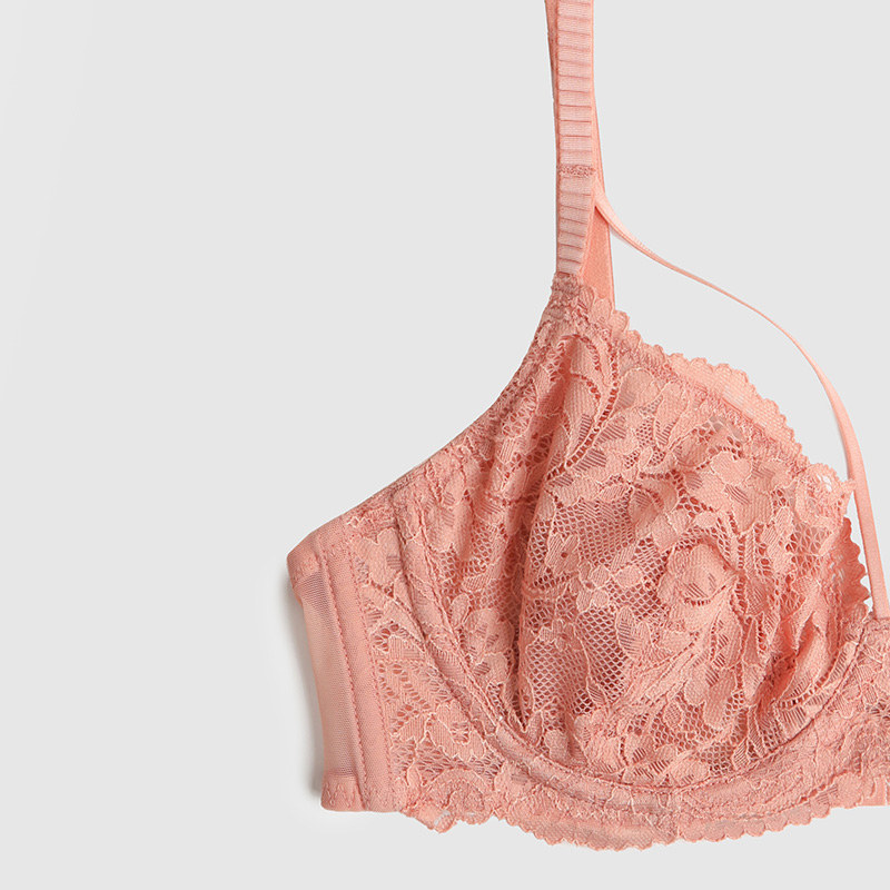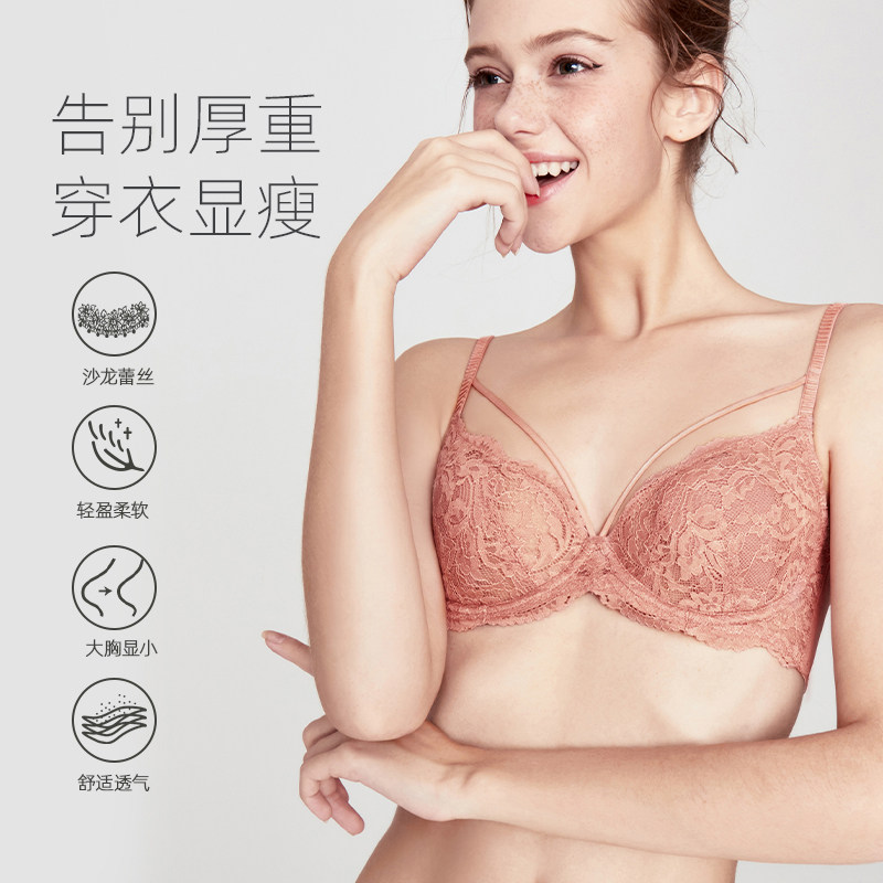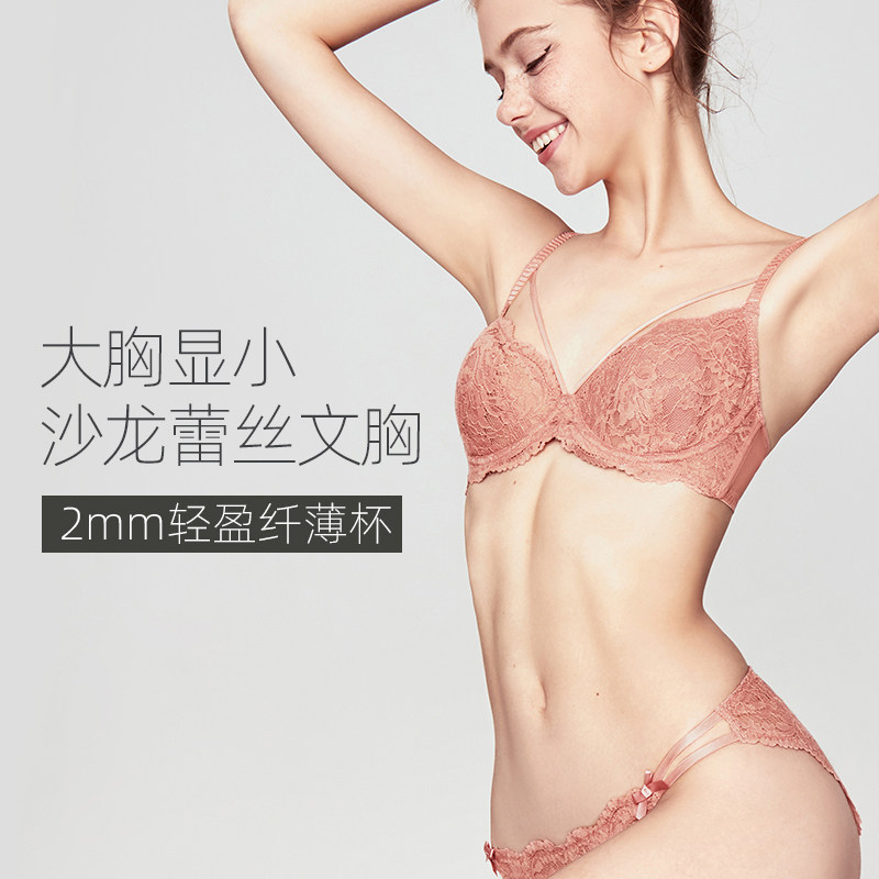 Curious Max French Lingerie Women's Big Breast Show Small Bra Thin Adjustable Sexy Bra Pink Lace Set