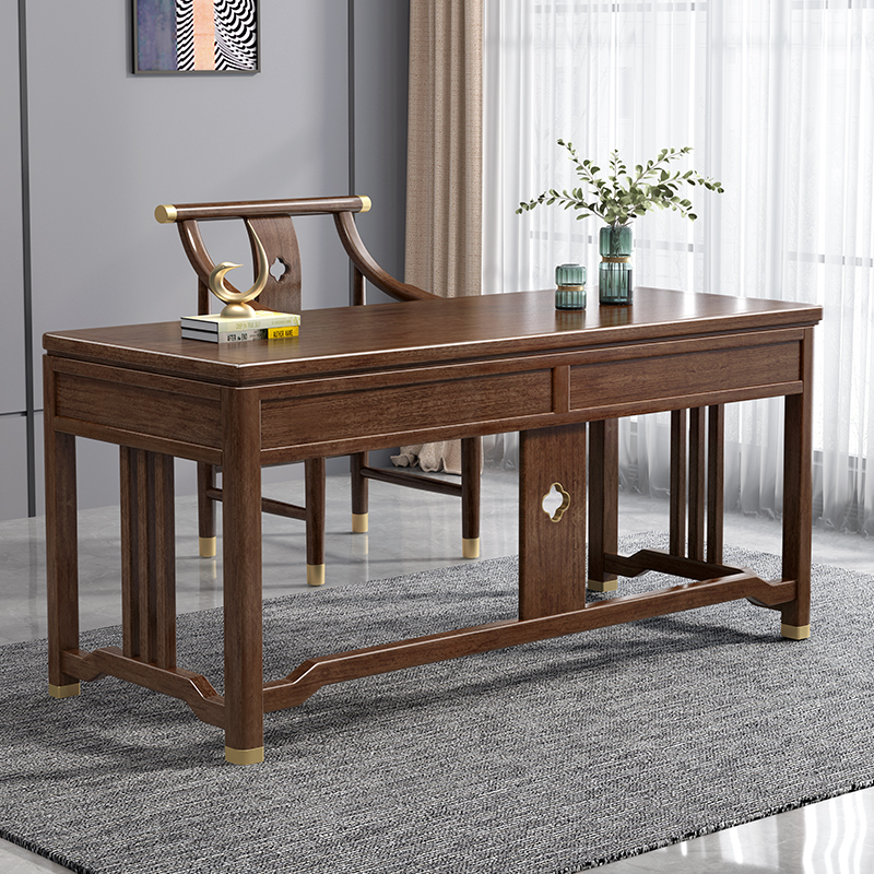 New Chinese style all-solid wood desk combination light luxury walnut office computer desk study calligraphy painting desk desk