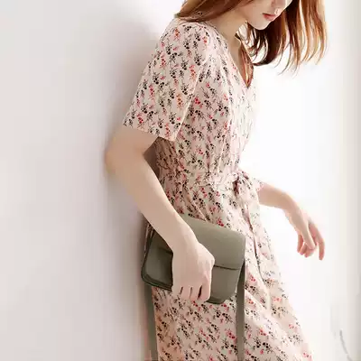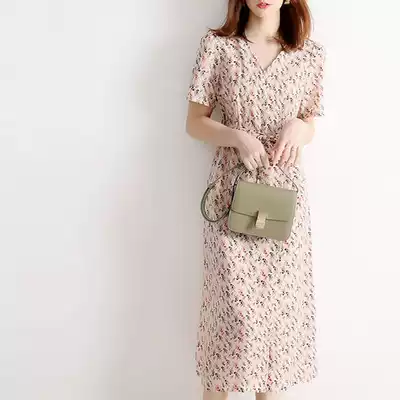 Floral dress female 2021 summer new retro thin temperament V-neck gentle wind medium and long chiffon skirt
