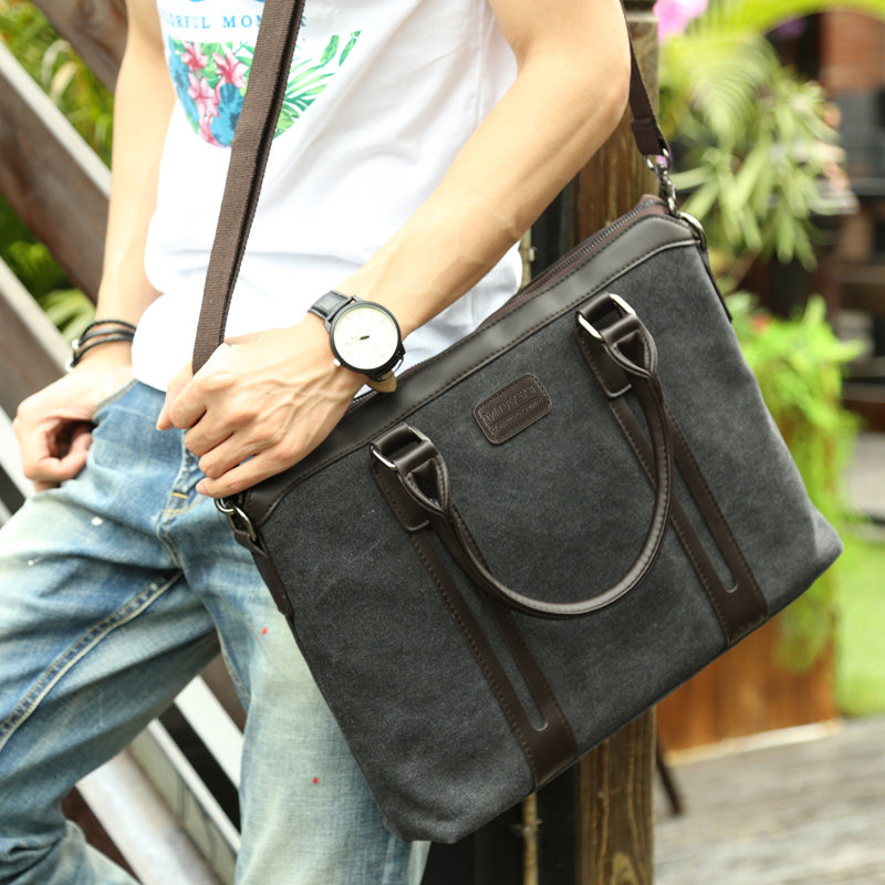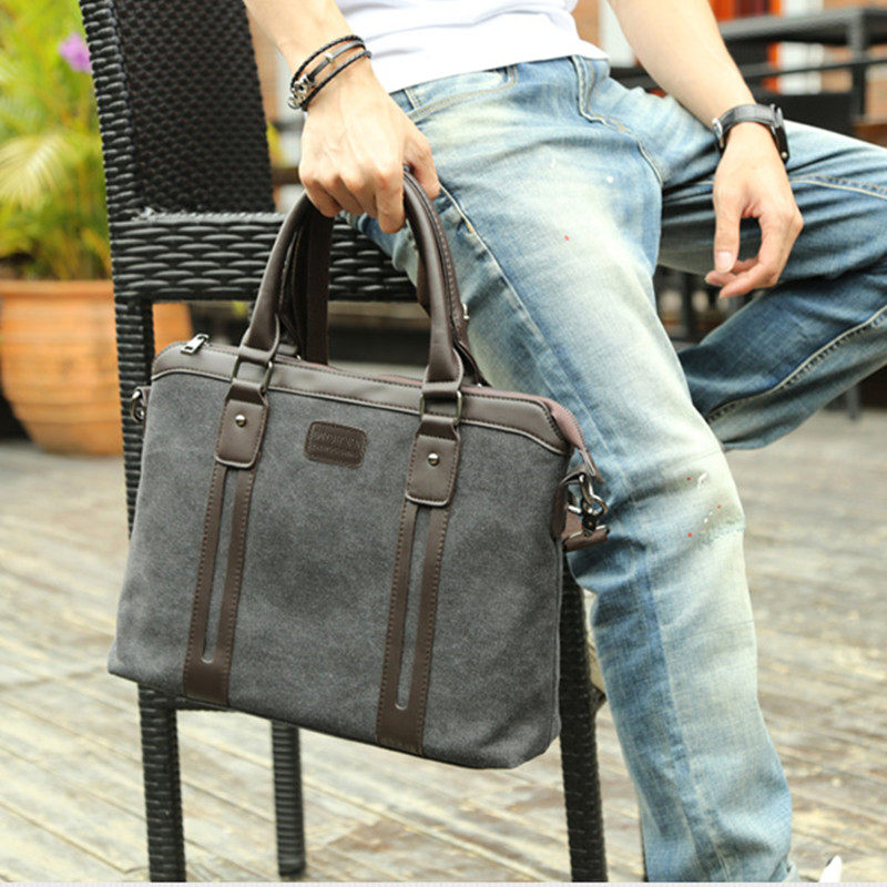Hong Kong men's new canvas briefcase business handbag casual office computer bag shoulder messenger bag