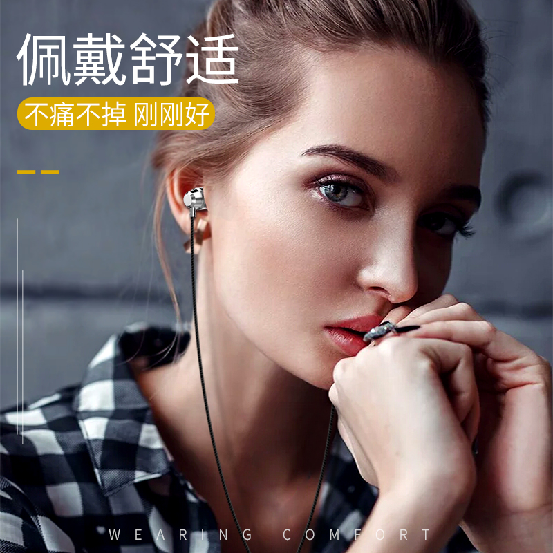 Headphone in-ear cable K song phone computer heavy low tone high sound quality line control with wheat metal cute ear plug style suitable for Huawei oppo Apple Android original dress universal summer