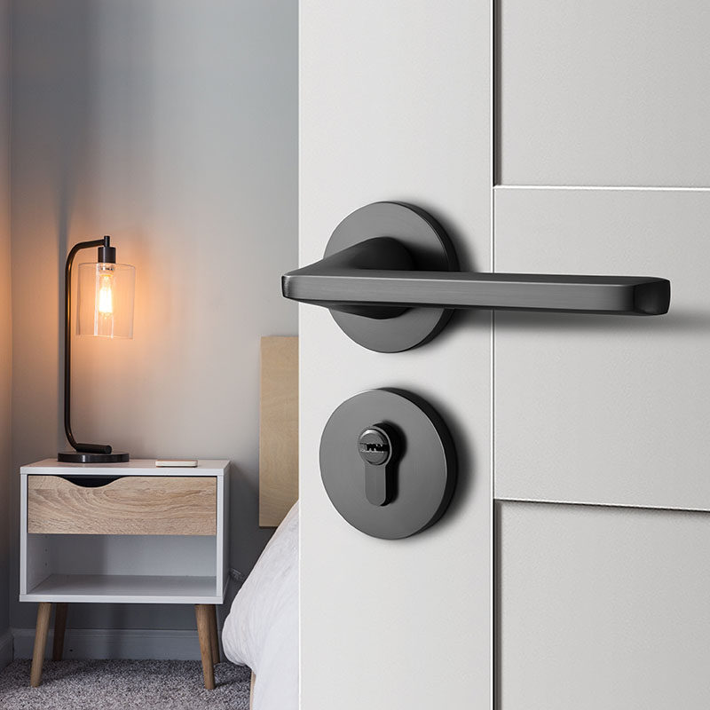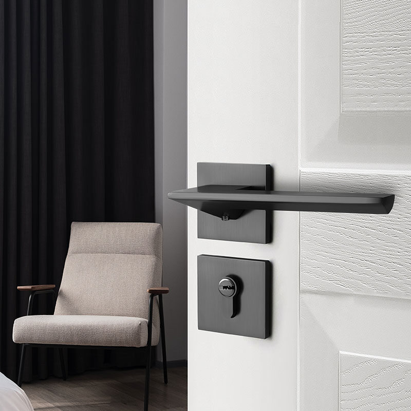 Gray door lock indoor household universal two-piece door lock simple bedroom door lock mute magnetic door handle