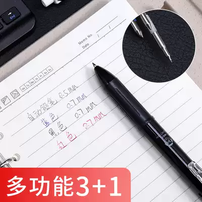 Morning light 0 7 ballpoint pen press type multi-color pen in one to take notes special color oil pen multi-function three-color mechanical pencil 0 5 four-color pen ball pen ball pen Red
