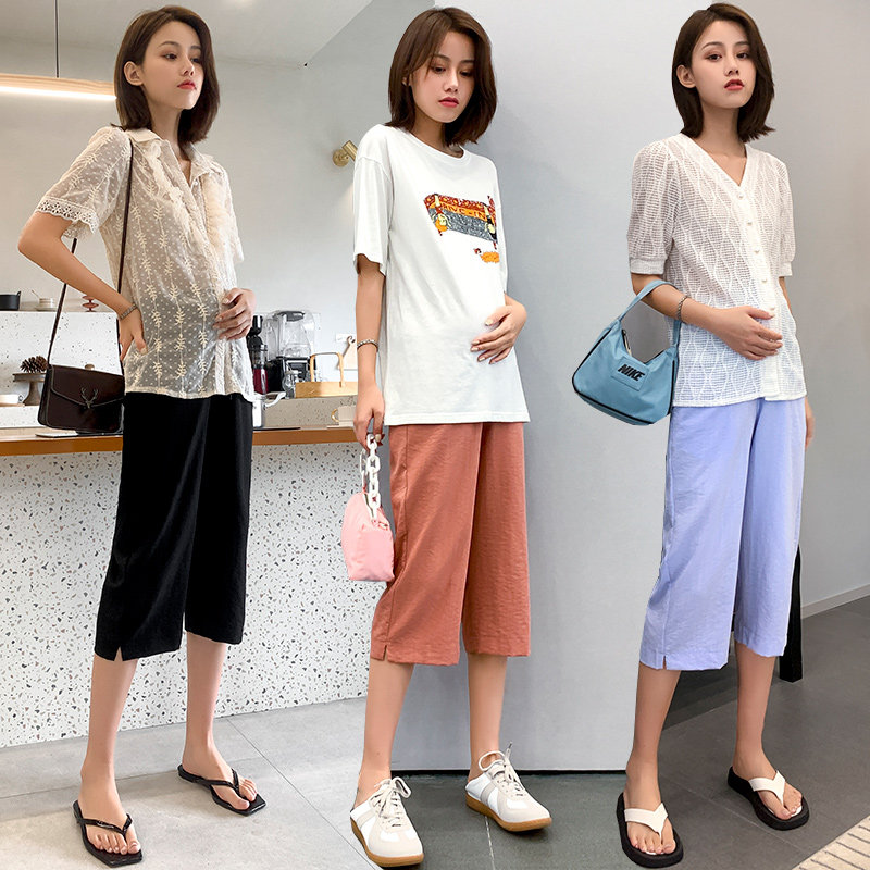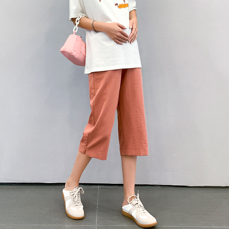 Pregnant Woman Pants Summer Thin Cotton Linen Loose Outside Wearing Broadleg Seven-minute Pants Fashion Summer Sports Pants Straight Barrel 50% Pants