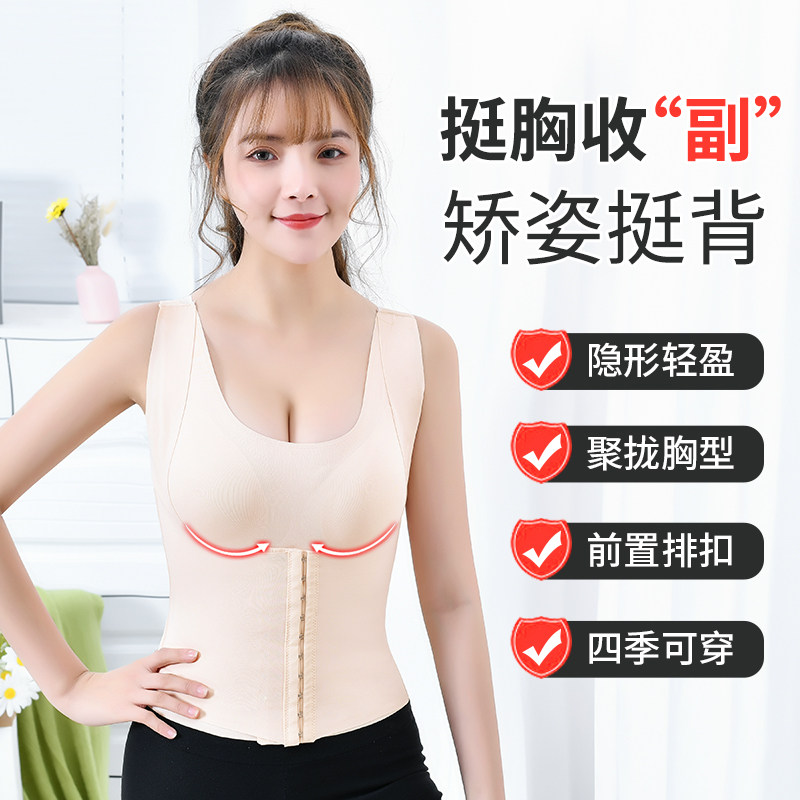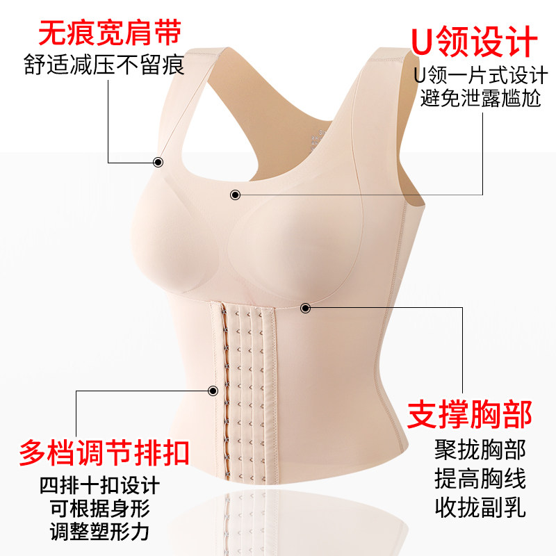 Beautiful back tummy control front button bottoming vest plastic top women's large size body repair slimming net red hot style with chest pad