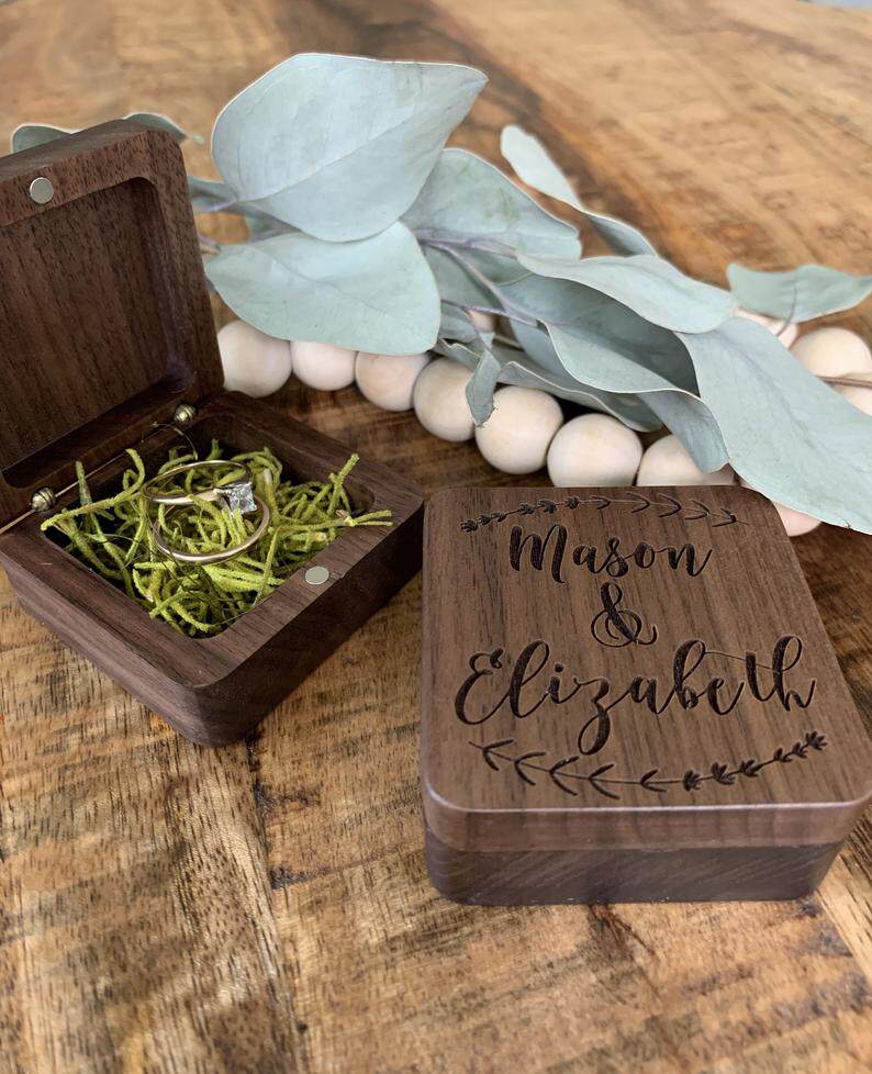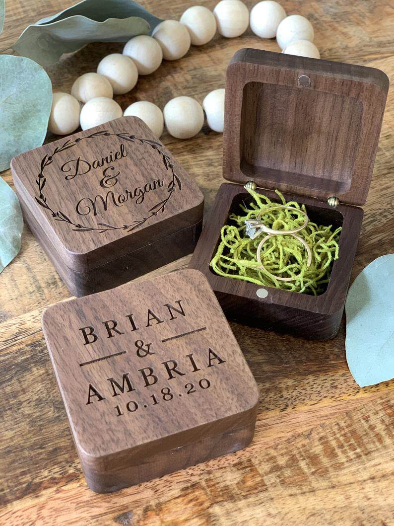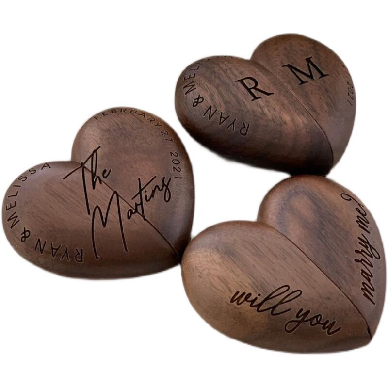 Booking lettering wood Wooden Ring Case Ear Nail Box First Accessories Box Gift Box Begging Wedding Ring Case Walnuts Wood Containing Box-Taobao