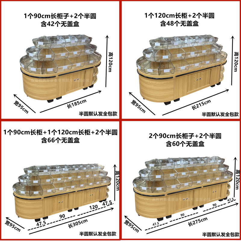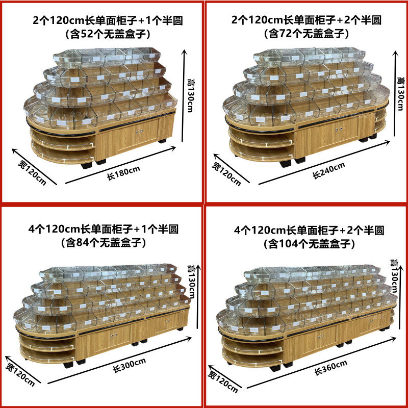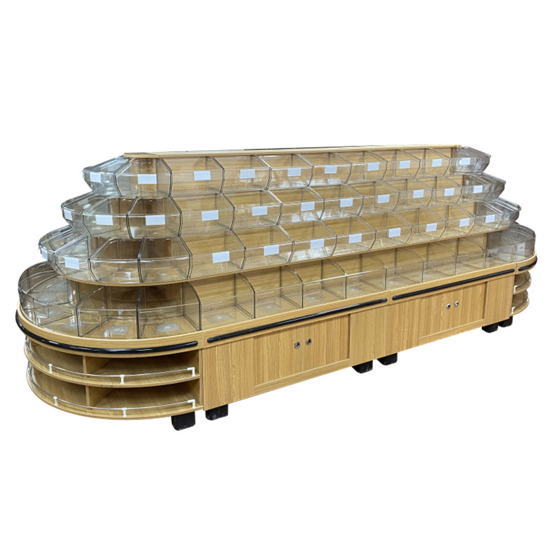 Supermarket wooden four-layer bulk snack cabinet convenience store leisure food bulk candy cabinet round island display cabinet