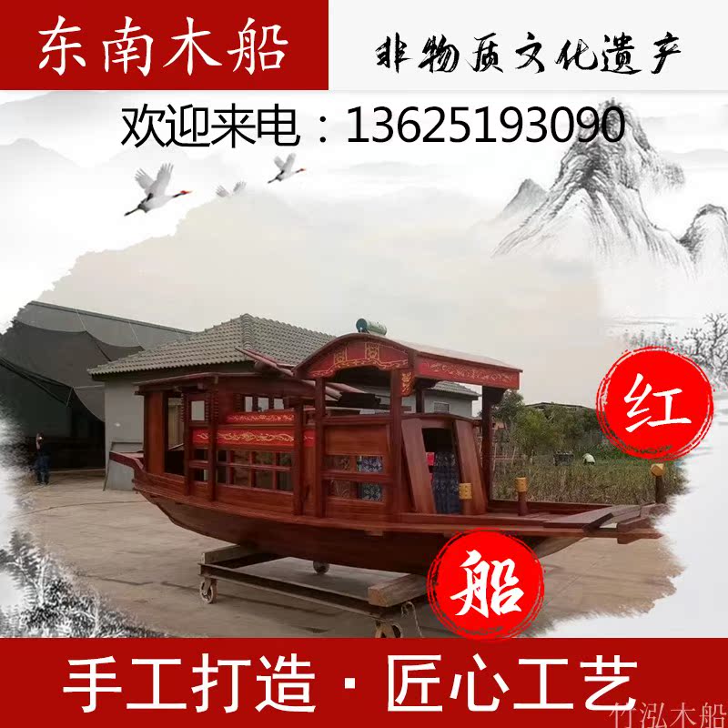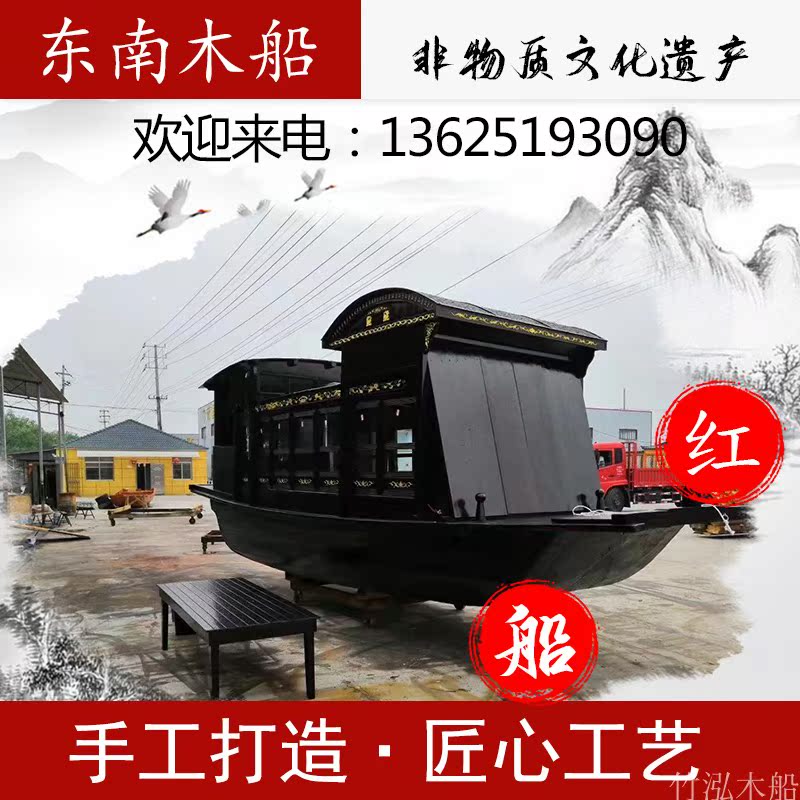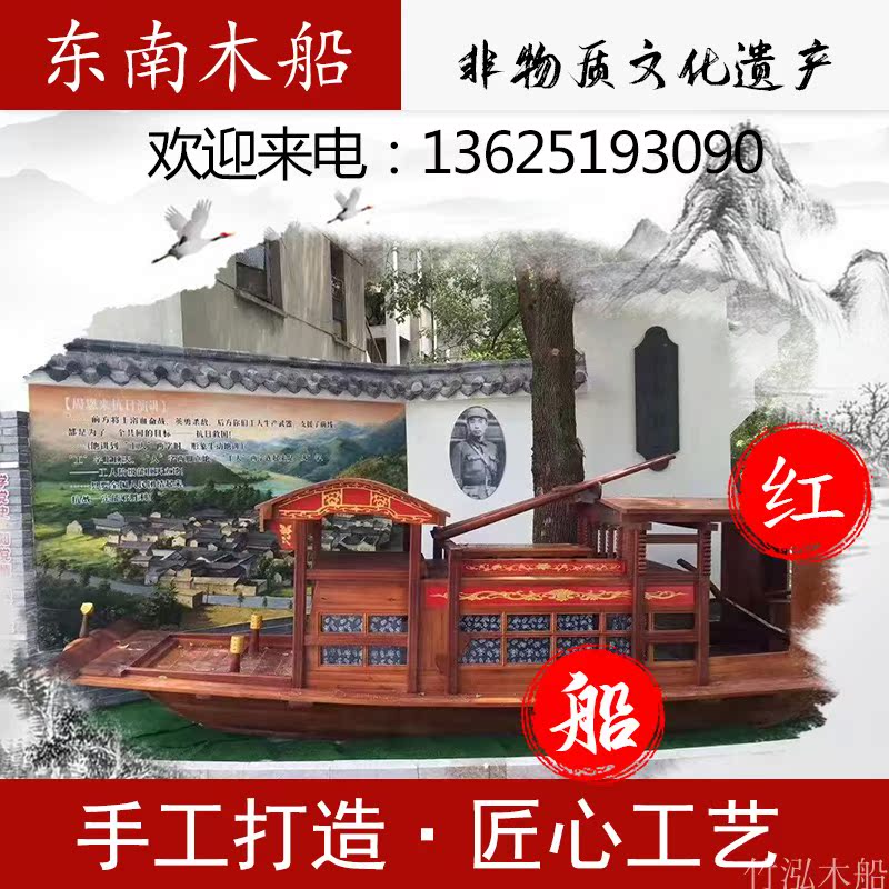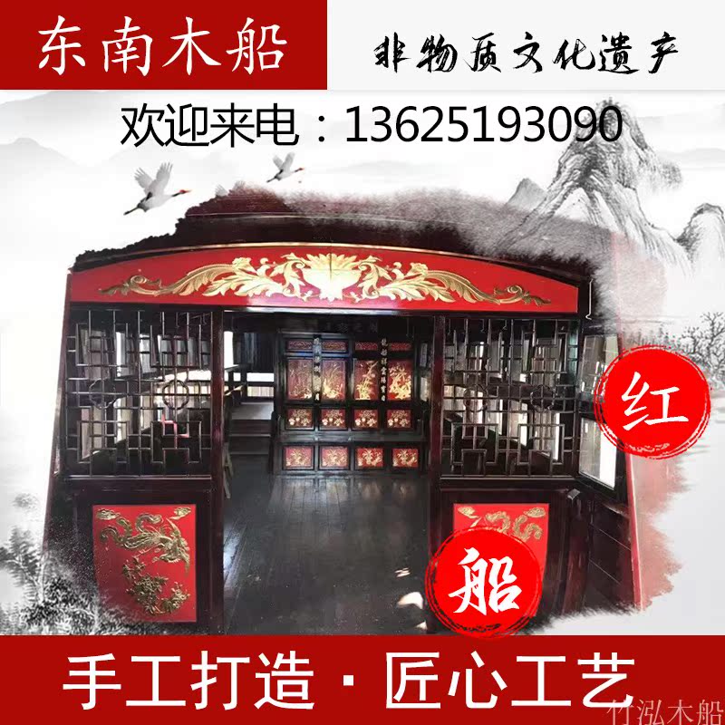 Customized Zhejiang Jiaxing Nanhu Red Boat Memorial Boat Exhibition Hall Decoration Outdoor One-to-One Wooden Large Model Real Wooden Boat