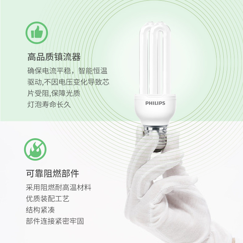 (compact) Philips energy-saving light bulb E27 e14 screw mouth u type 2u table lamp fluorescent home 5W8W11W