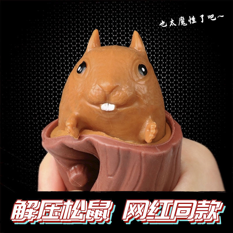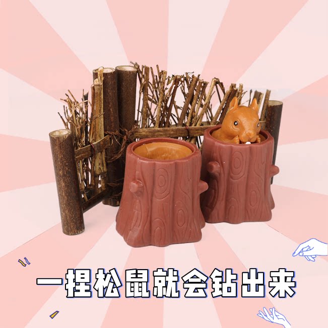 Evil Little Squirrel Cup Net Red burst Withdrawal Cup Tree Stumps Pine Squirrel Decompression God squeezes knead and knead rubber toy