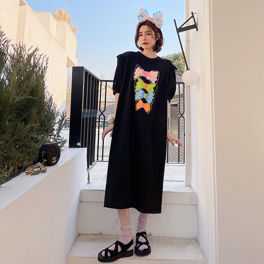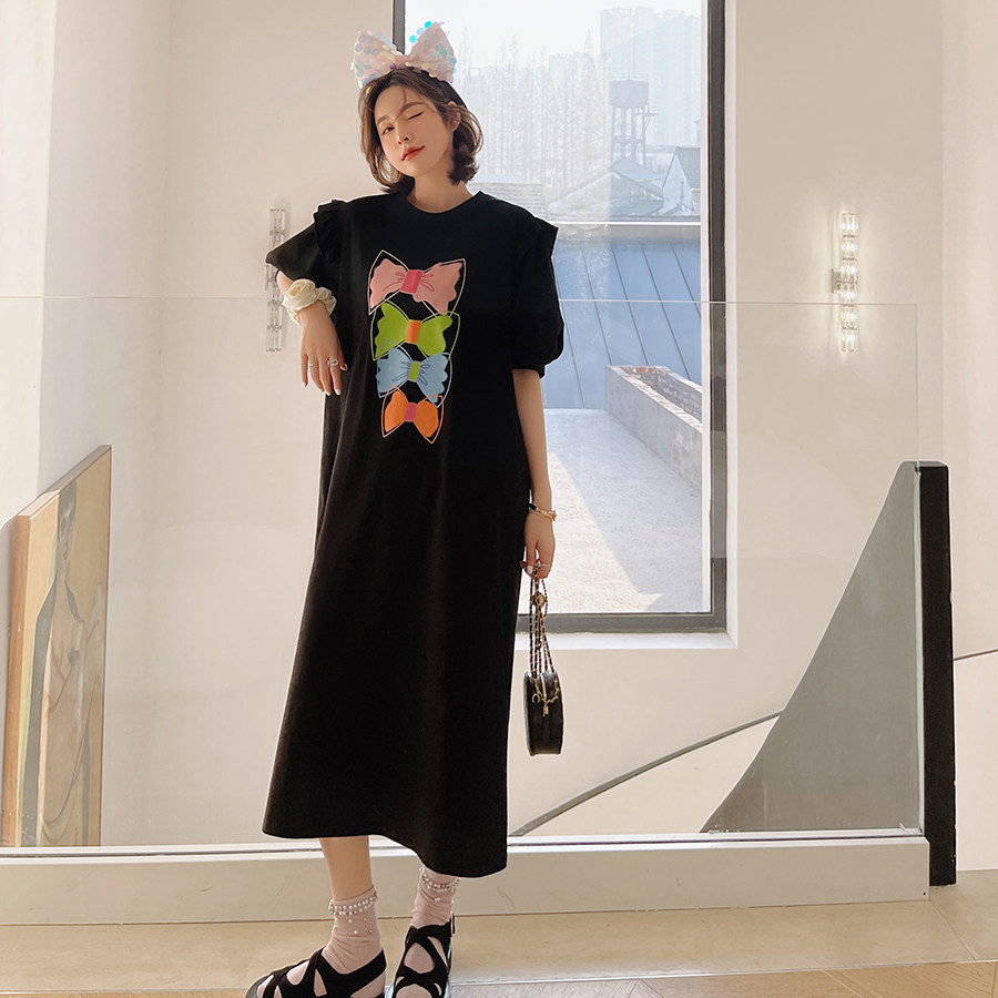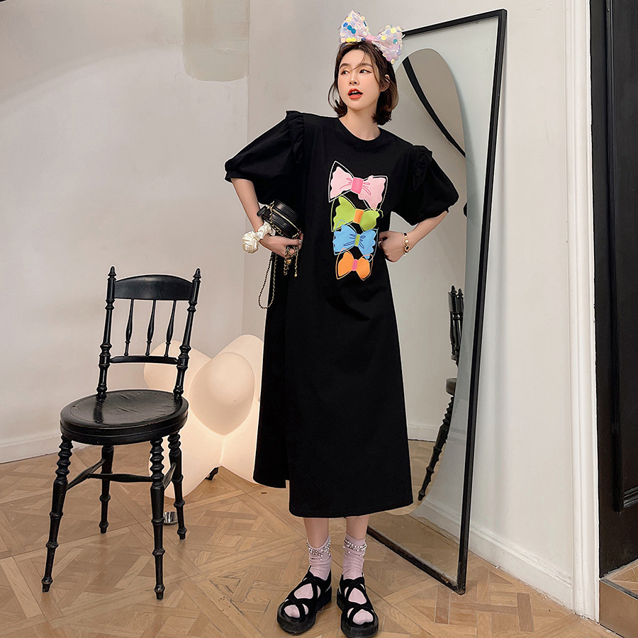 2021 summer new large size fairy dress long version split in the escape princess lantern short sleeve casual long dress