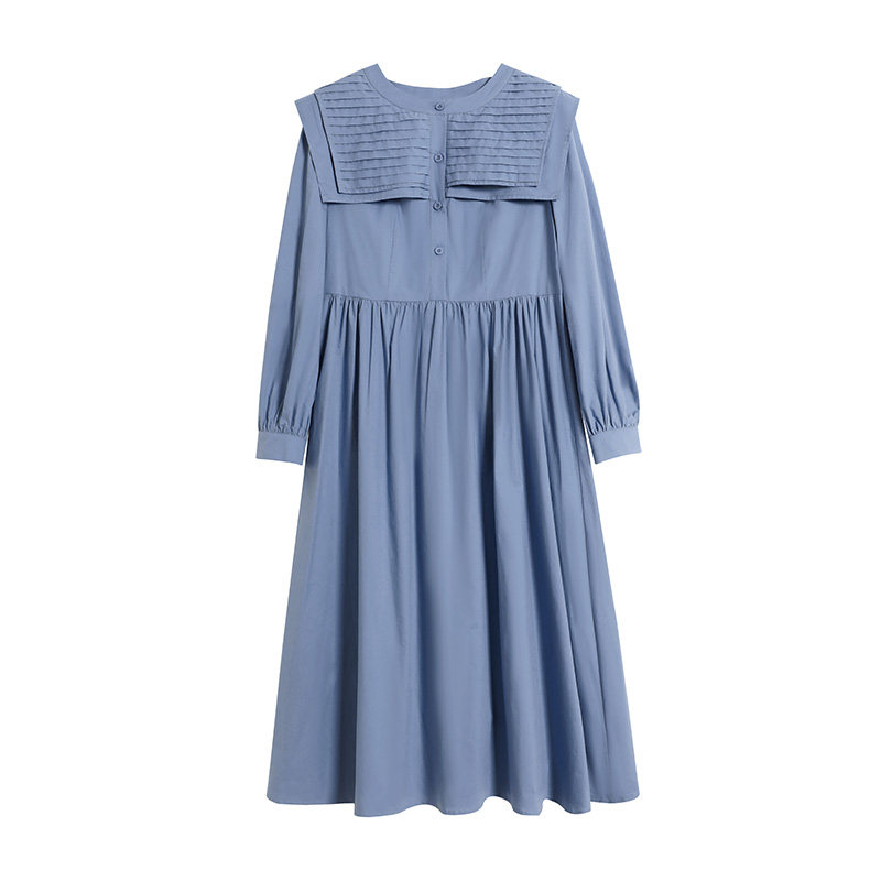 Blue Language Great Size Women Dress Fat Sister Mm Navy Wind Shirt Long Sleeve Foreign Dress 2022 Spring New Cover a word dress