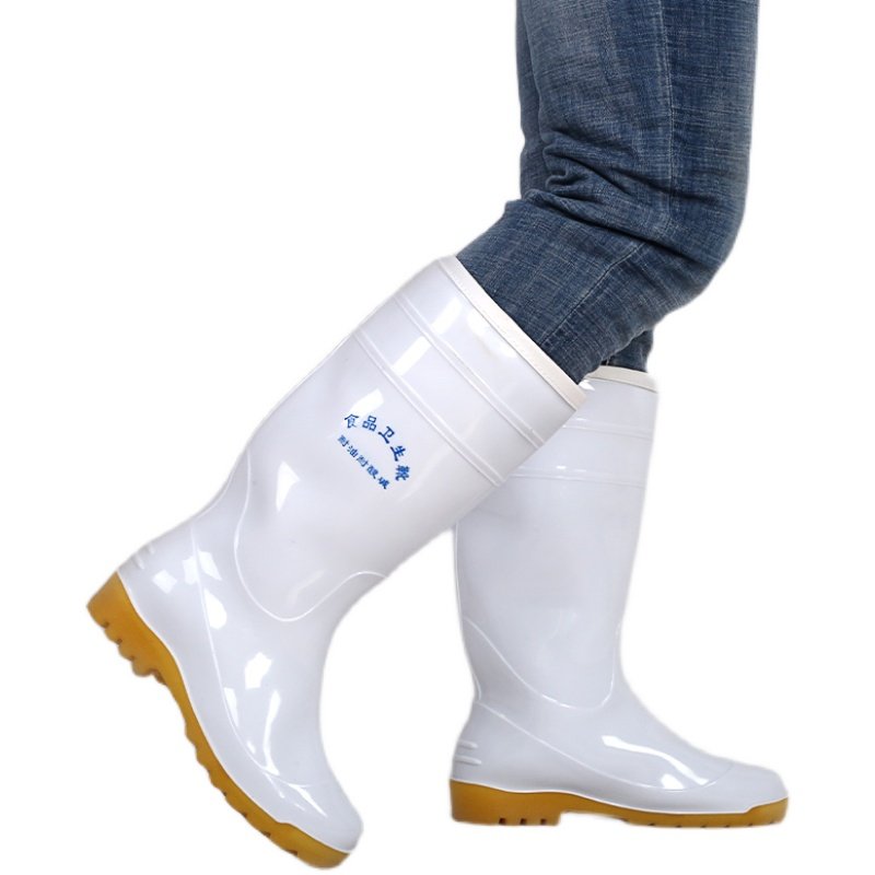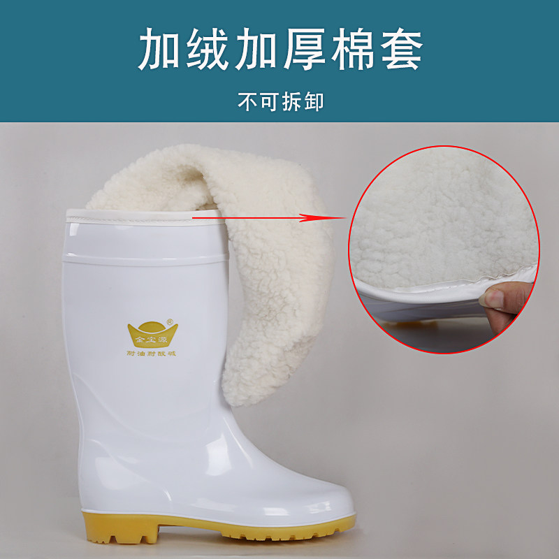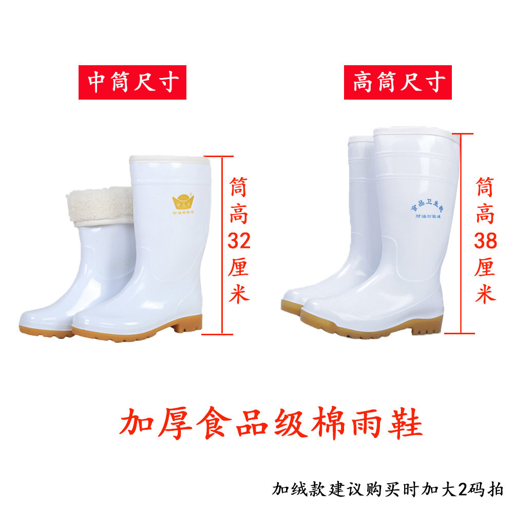 Food sanitary boots in high cylinder white cotton rainshoes anti-slip oil resistant alkali boots for men and women chef plus velvet bull