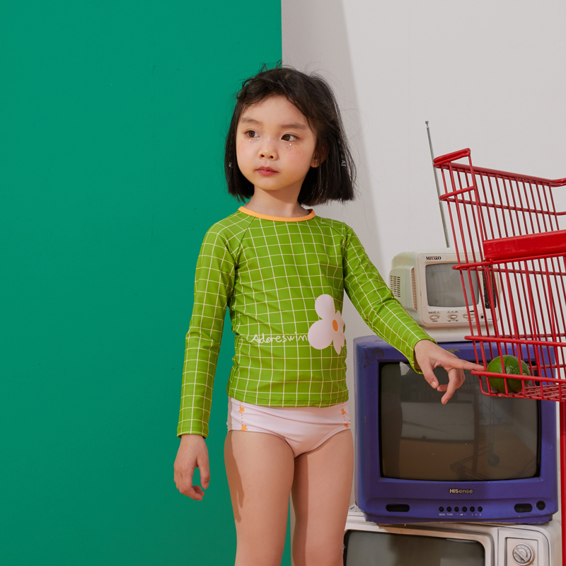 Aidol girls swimsuit 2021 new split long sleeve shorts cute female baby swimsuit sunscreen swimsuit
