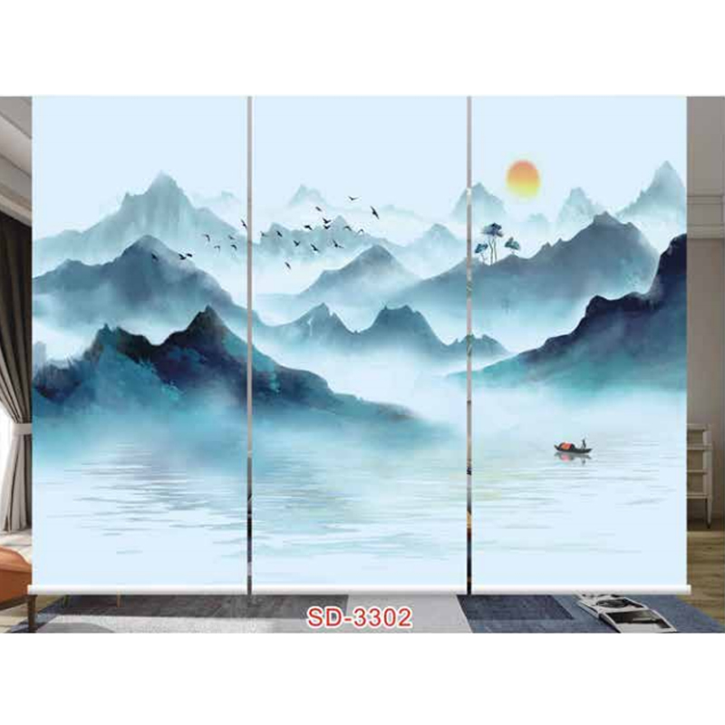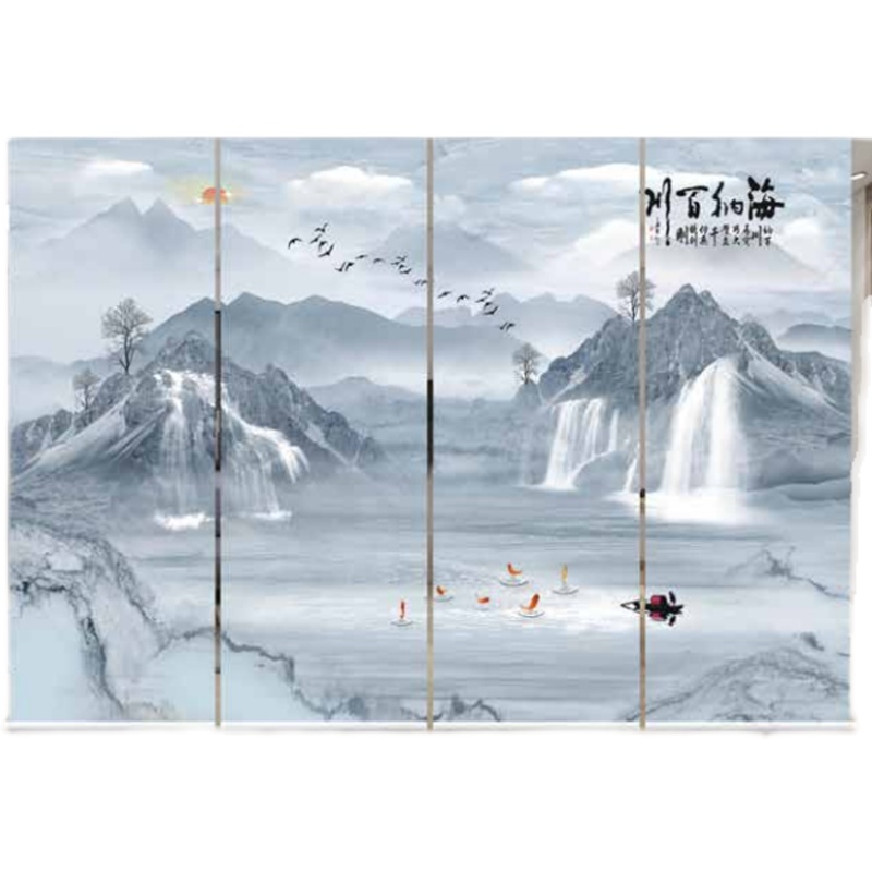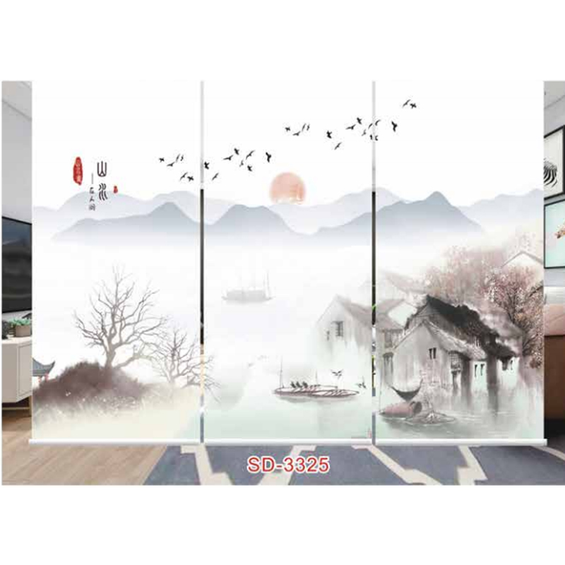 Modern new Chinese style roller blind curtain lifting blackout screen partition curtain perspective porch office tea room hanging curtain Zen