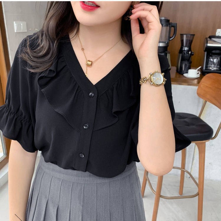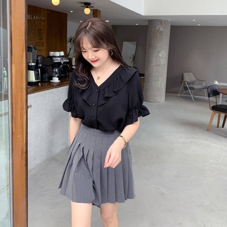 South Korea 2021 summer dress new large size shirt woman design sensation small crowned snowspinning shirt V collar fat mm skinny blouse