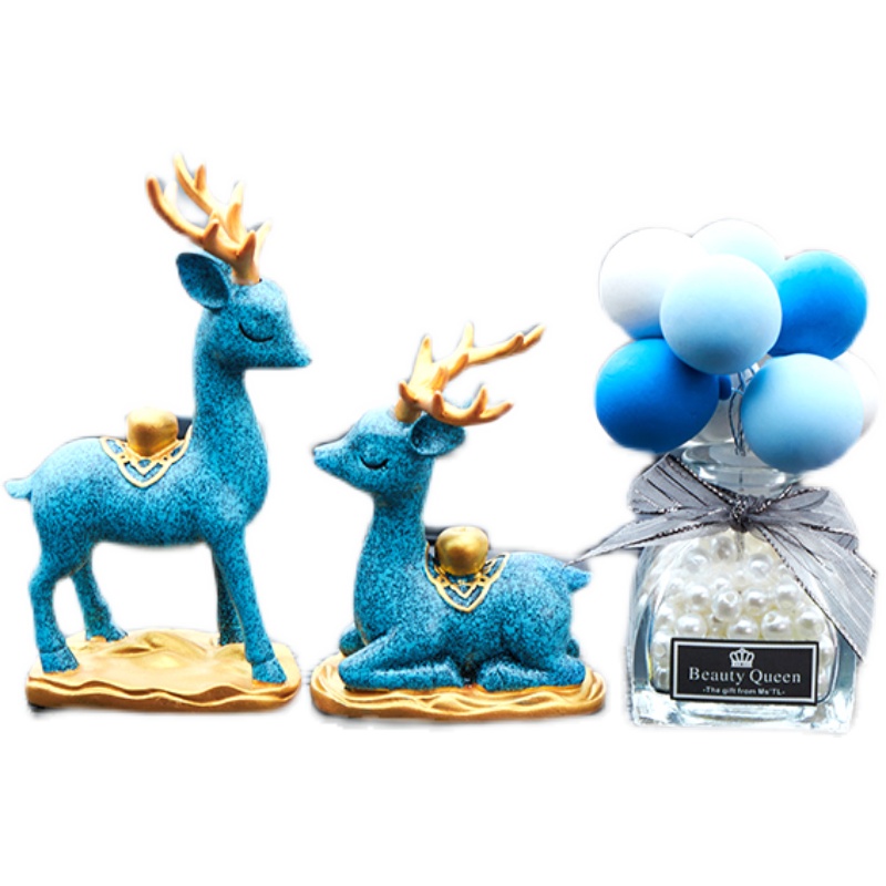 (Blue) A pair of lotus deer, bowknot, colorful crystal apple, large
