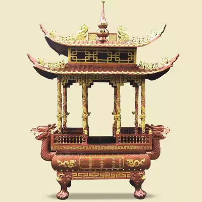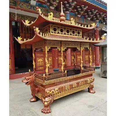 Factory direct sales Taoguan land temple ancestral hall pig iron casting rectangular four Dragon column with top cover incense burner custom