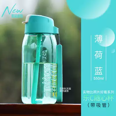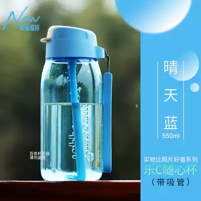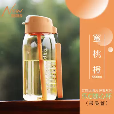 Tupperer C fun suction tube Cup 550ml plastic portable water cup sports men and women leak-proof students