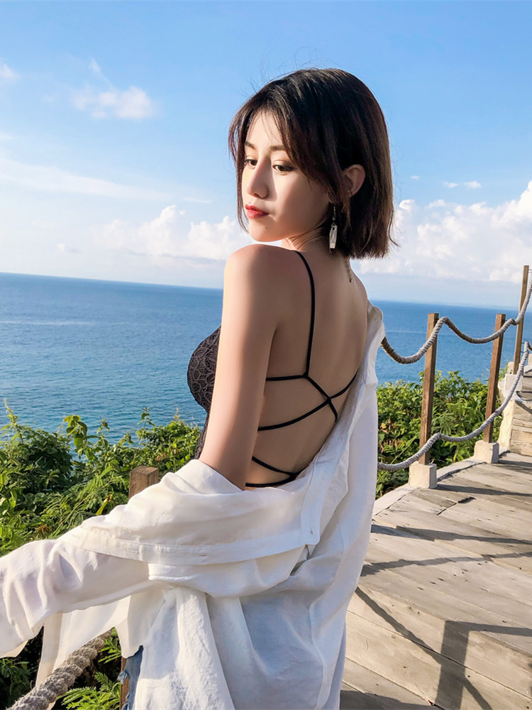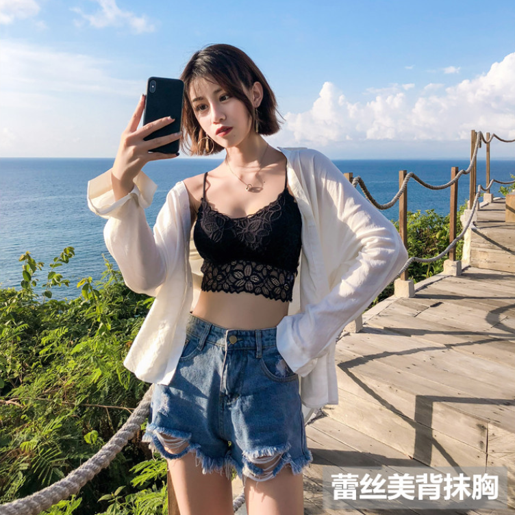 Smear Underwear Women's Anti-Walking Light Beating Bottom Blouses Wrap Chest Type Short And Beautiful Back Sexy Lace Poly Woo With Harnesses Small Vest