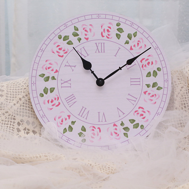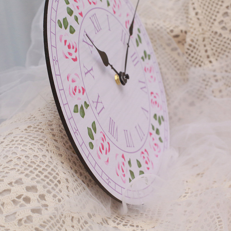 ins little fresh wood hanging bell creative personality fashion watch and watch small rose hanging table wall living room decoration clock