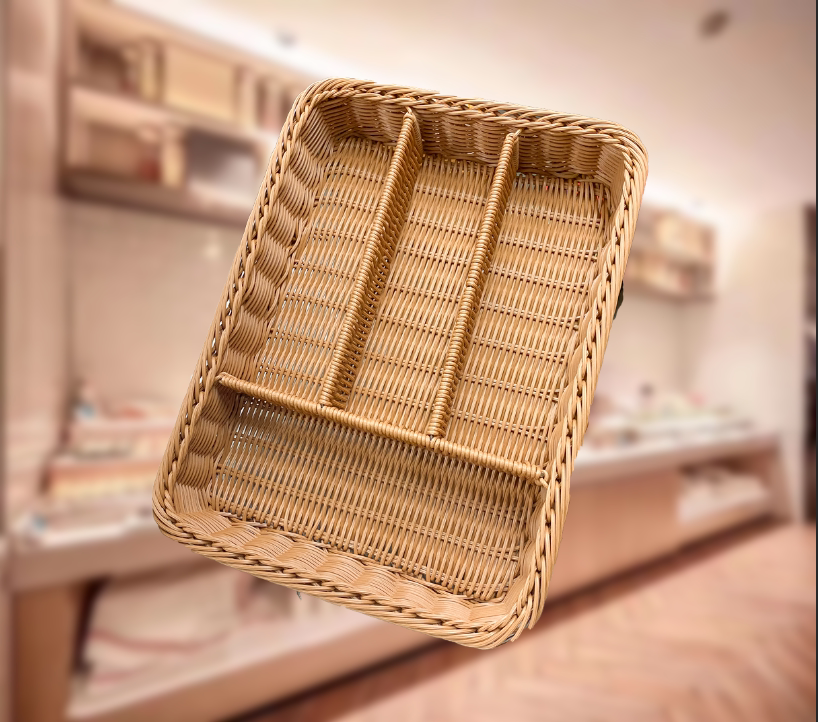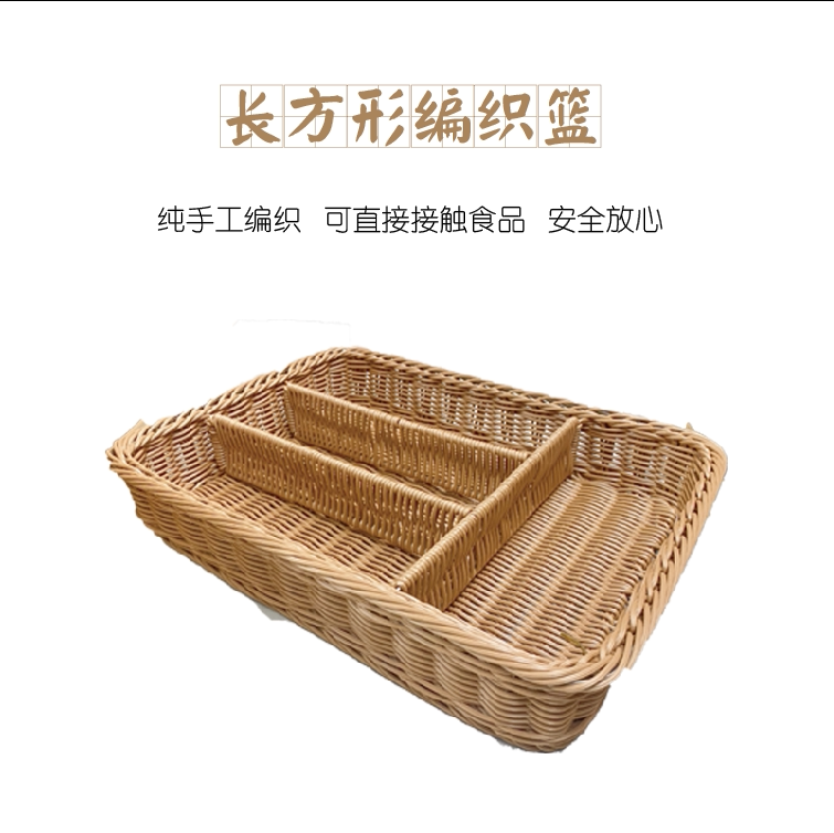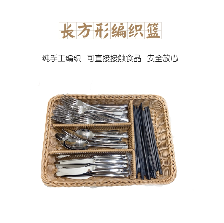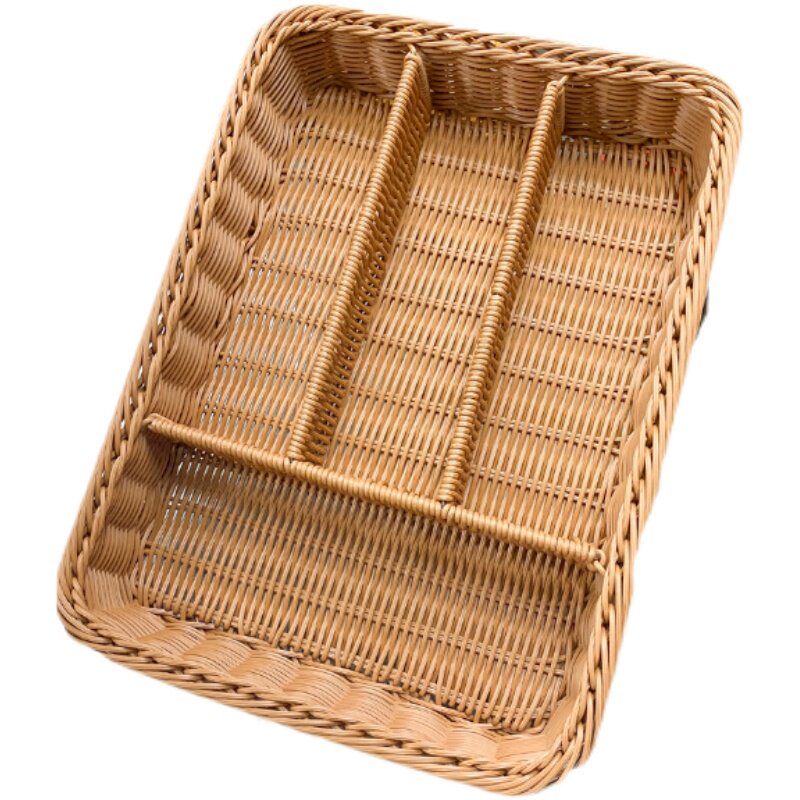 Rattan-like woven rectangular tableware four-grid knife and fork blue storage box drain basket chopsticks divided grid blue creative storage basket
