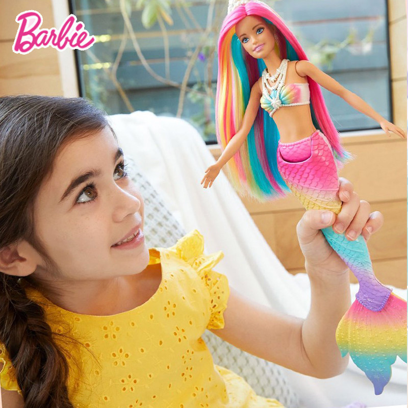 2021 new Barbie's catch warm color Mermaid fairy tale princess girl child dress up wine toy