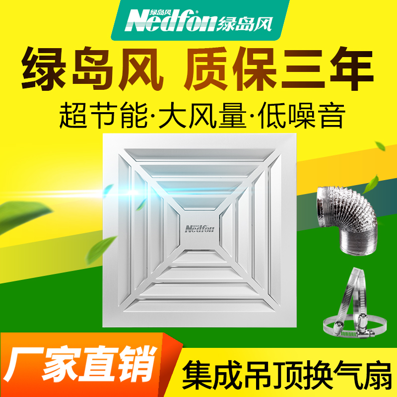 Green island wind exhaust fan 8 10 12 inch integrated ceiling ventilation fan 300*300 exhaust fan mute with check valve
