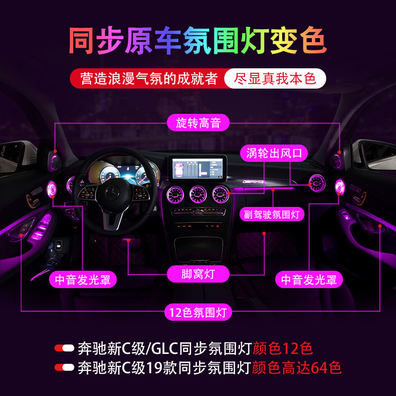 (C-class GLC) 12 64-color ambient light (saddle, four doors, footwell) (2-piece set A) ambient light front turbine (2-piece set B) ambient light rotating tweeter