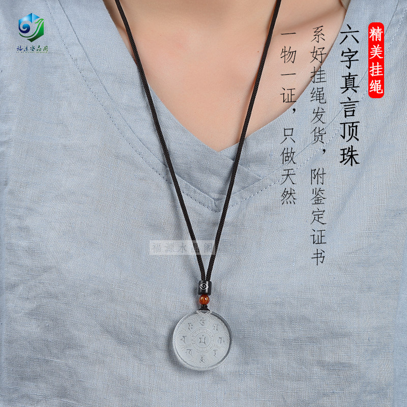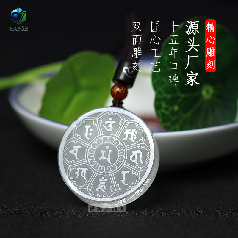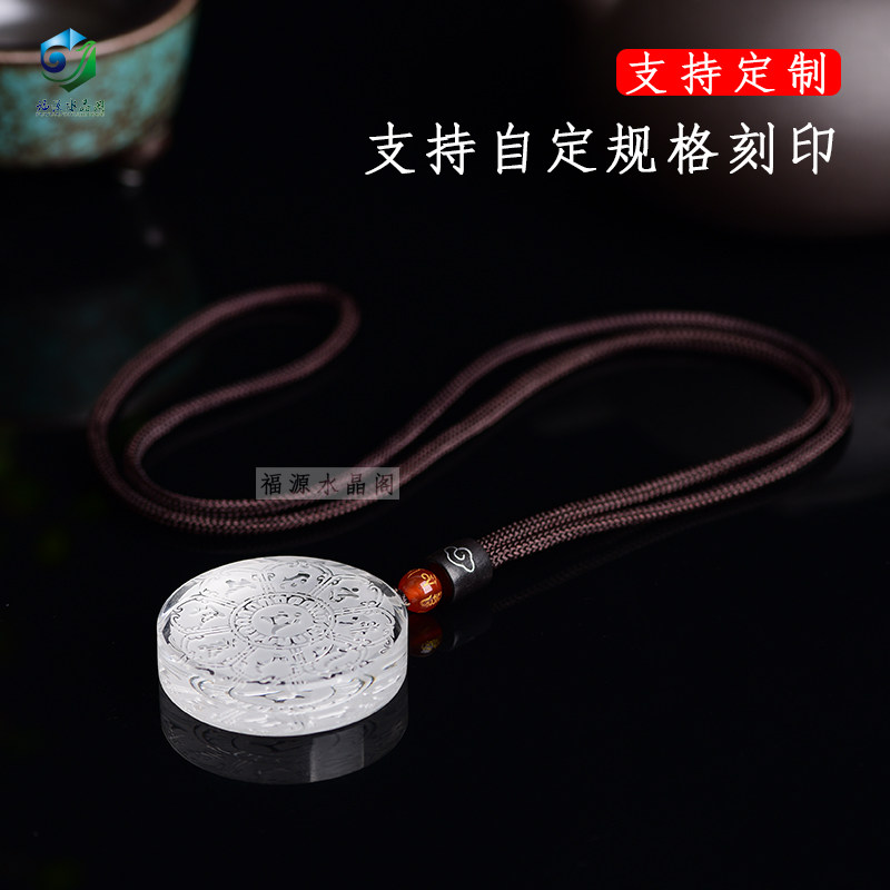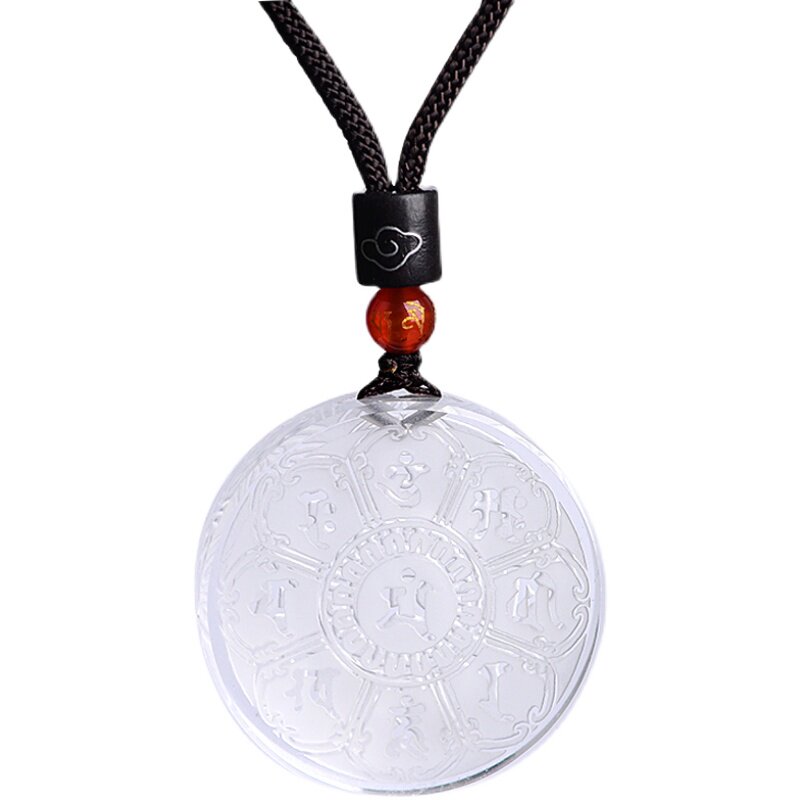 Natural white crystal Manjusri Bodhisattva heart mantra pendant double-sided engraving wisdom scripture round card necklace pendant can be customized