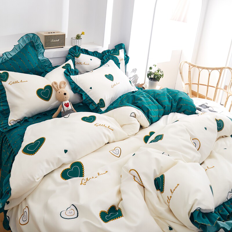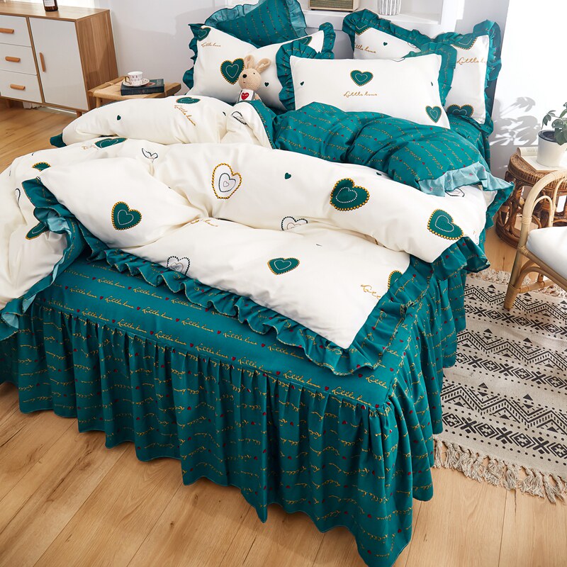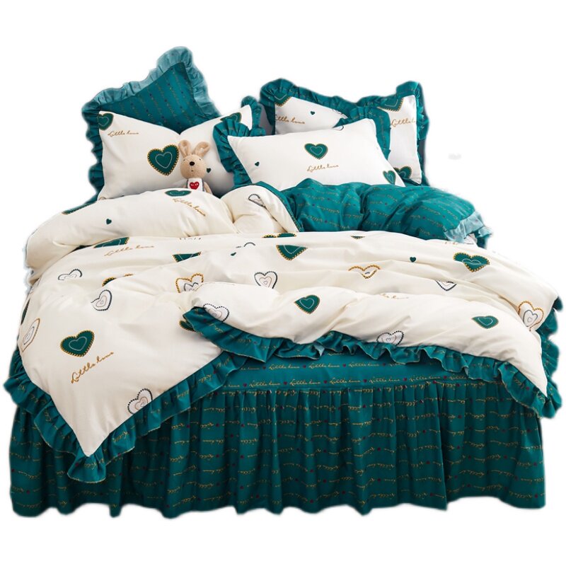 Little Red Book recommends the bed skirt with bedspread four-piece set princess style cotton quilt cover girl heart spring and autumn model